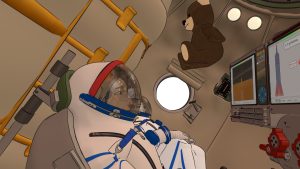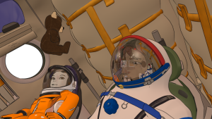 Today I’m working on the camera file for the “Soyuz Flight” interiors. This is ink and color, with the full EXR compositing setup that I’m planning to use. It’s basically recreating the default result in Blender, but with the EXR workflow, it will be possible to tweak certain things, like the intensity of the reflections in the helmet visors, in the compositing stage, without having to re-render.