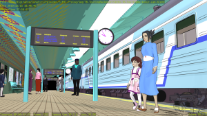 In this image, the train is moving away from the camera, and the further it goes, the more detailed 3D structure exists in the long regress into the distance in the middle of the picture. At the beginning of the shot the render time isn’t too bad — just about one minute. But as the shot progresses, the render time goes up to about 12-15 minutes.