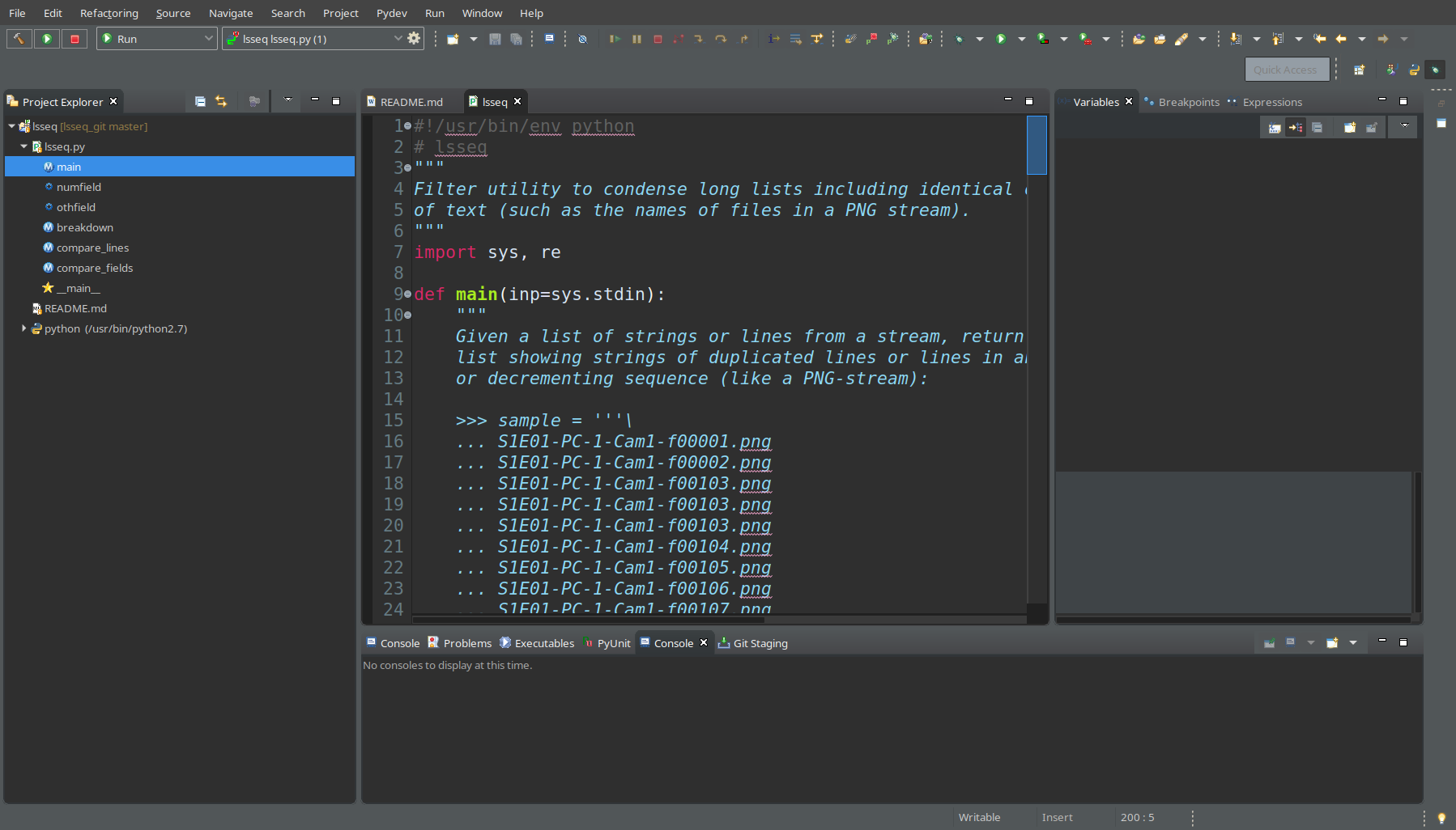 So, while my renders were running, I decided to take this on, and I did it. It took about four days total: I installed Eclipse and PyDev (the Python view for Eclipse), Egit (integration for Git version control), and some other extensions, and then developed this simple filter utility. Not that bad, really — I might have expected it to take longer.