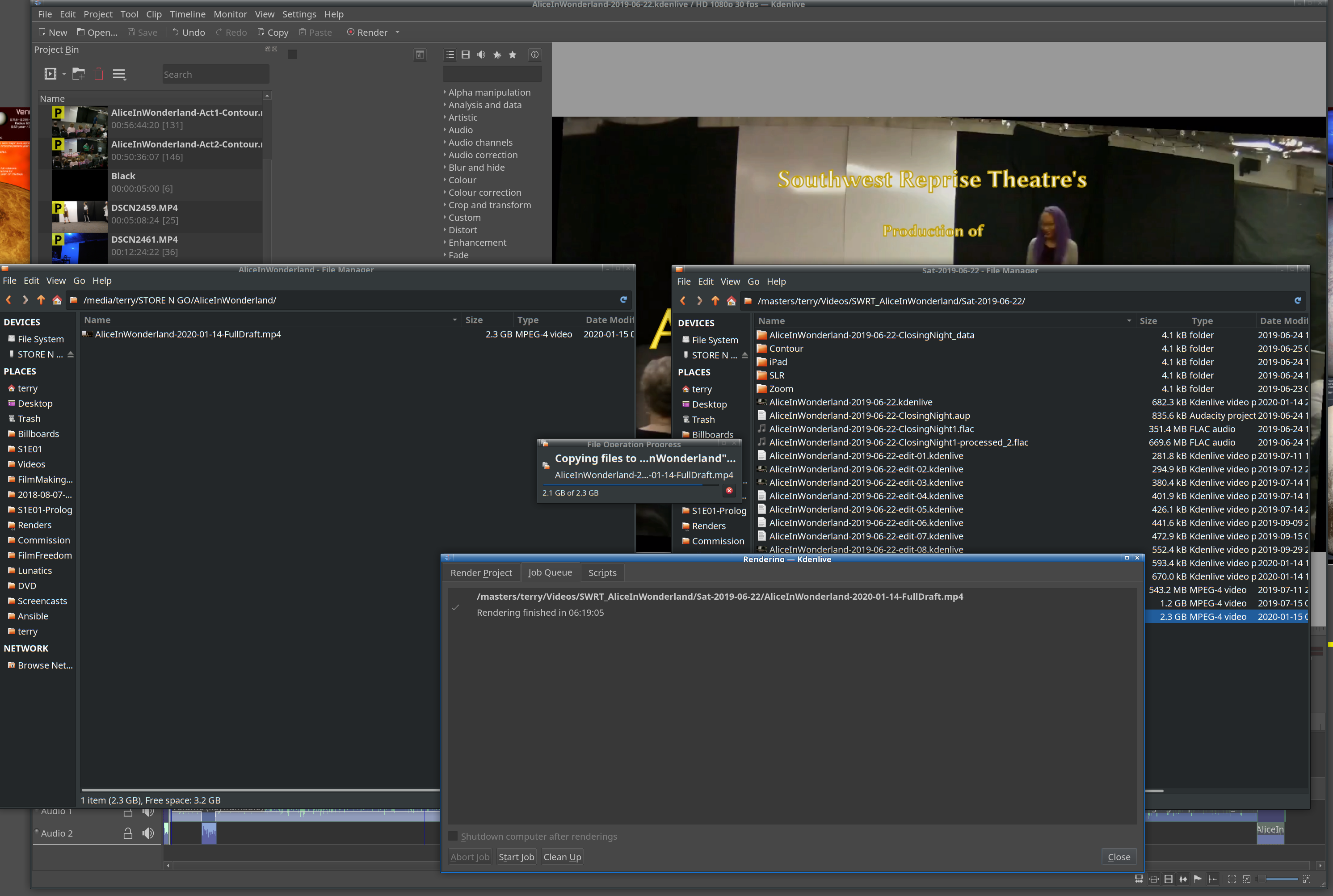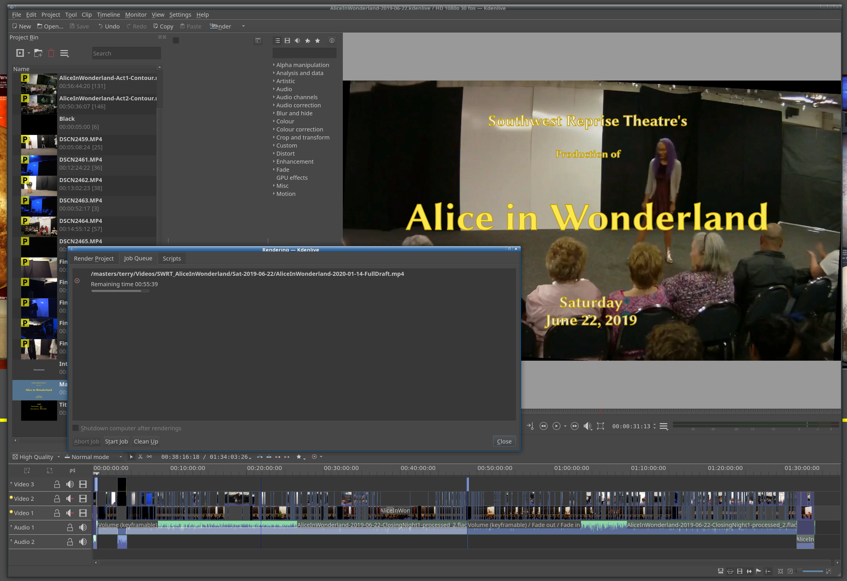 - Finished the video and DVD for SWRT’s “Alice in Wonderland”