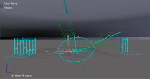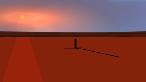 For this, a patch of the Earth’s surface is modeled as a disk, with a sky dome over it to provide the clouds and ring of backdrop horizon. Controls are provided for the Sun and Moon position from the “Hour Angle” (or time of day). The latitude and north direction are set by adjusting the pose of the Sunlight Controller. When the Sun is close to the horizon, constraints set in to provide the broadening and reddening of the Sun’s glow in the atmosphere.
