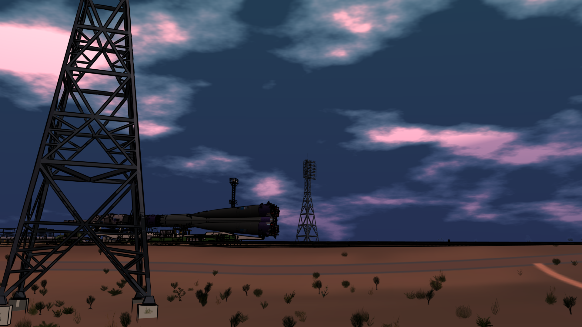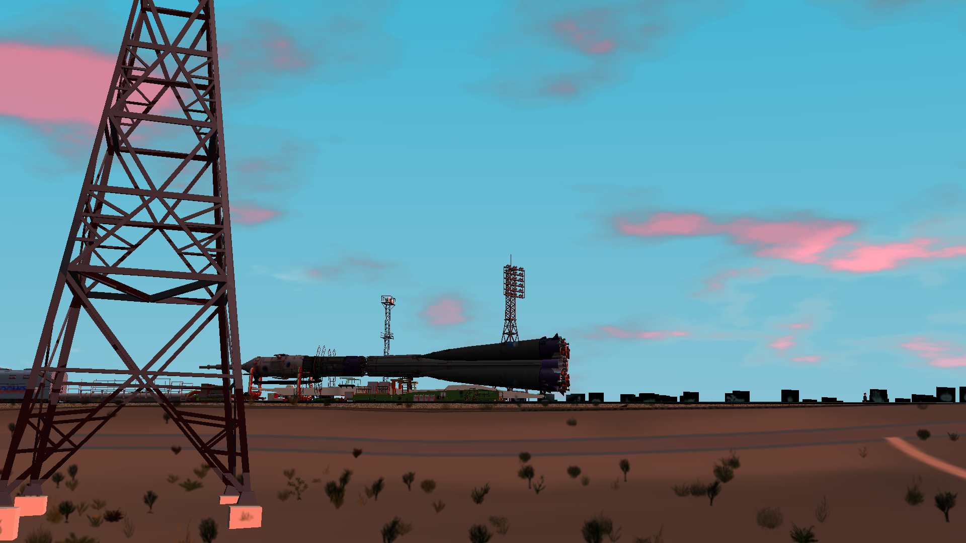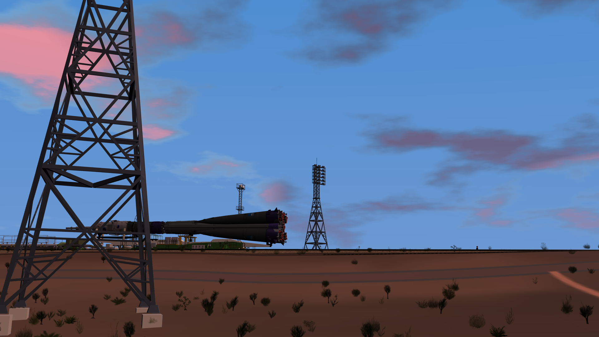 I setup most of the animation for the S1E01-SR “Soyuz Rollout” sequence, including the timelapse and realtime sections, although I have not yet added the billboard extras (and there’s a problem with the billboard plants, when they are silhouetted against the sky or distant background.