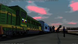 Most of it is rendered “paint-only” (no Freestyle ink, and also without anti-aliasing), at 6fps (most of the final will be at 30 fps, except the ‘timelapse’ sequences which will be 10 fps, as they are in this video). The final shot of the previous TR (“Train”) and the first shot of the next TB (“Touring Baikonur” — already rendered) sequences are included for context.