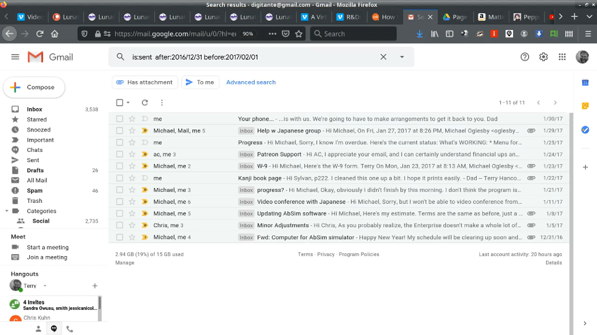 Most of my project communications have been on my Google mail account. I sometimes gripe about being so dependent on Google, but I keep using it, and I certainly did for all of 2010 to 2018.