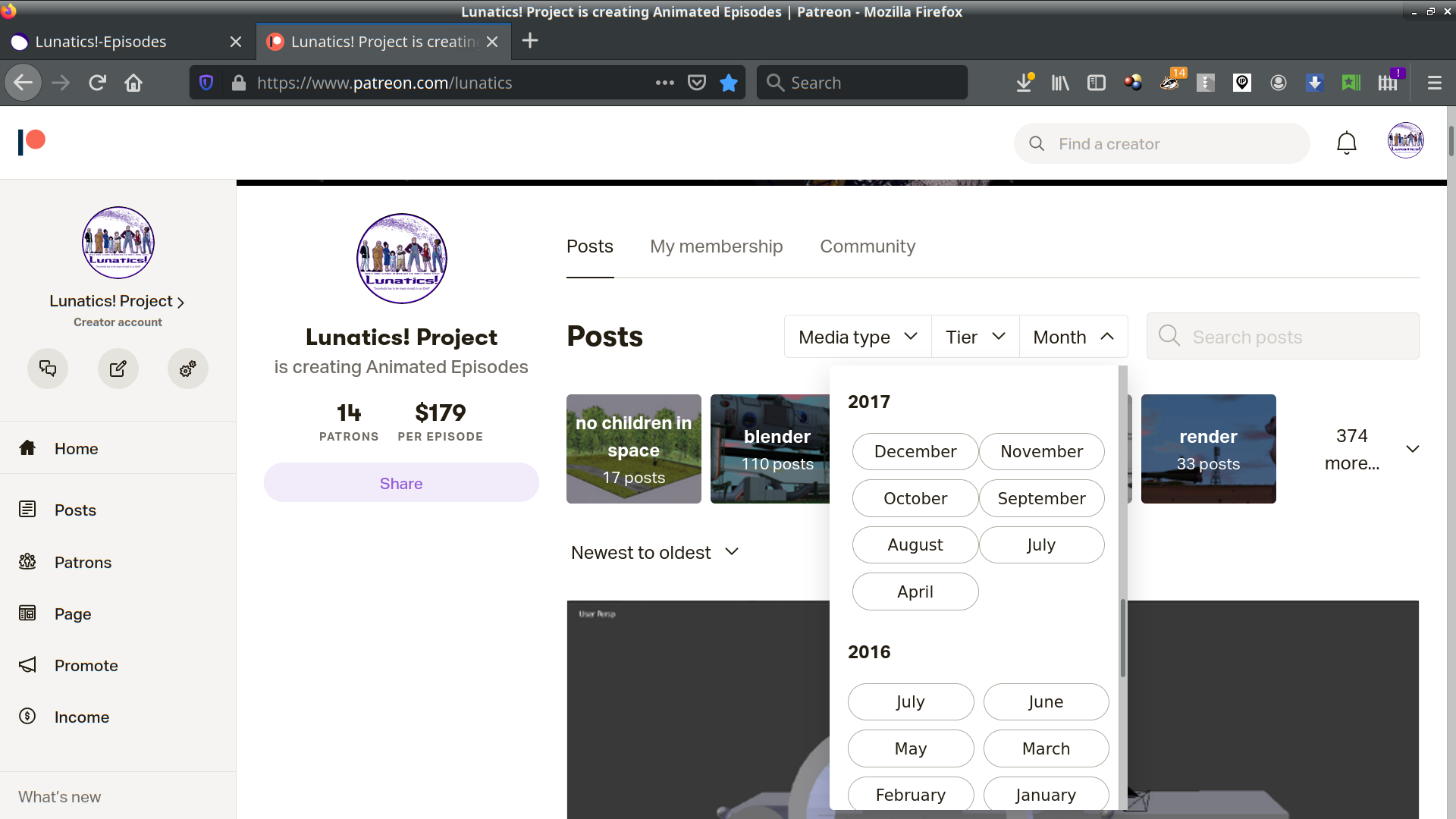 folder (because those are the conversations I took part in). - Searching for posts by month on Patreon.