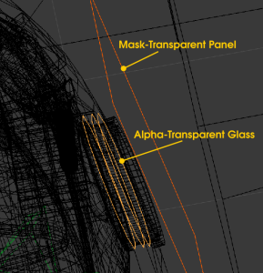You’ll note that not only can we see the background, but we can still see the reflections of the interior on the glass. This is because the mask-transparent panel is behind the “glass” in the interior model.