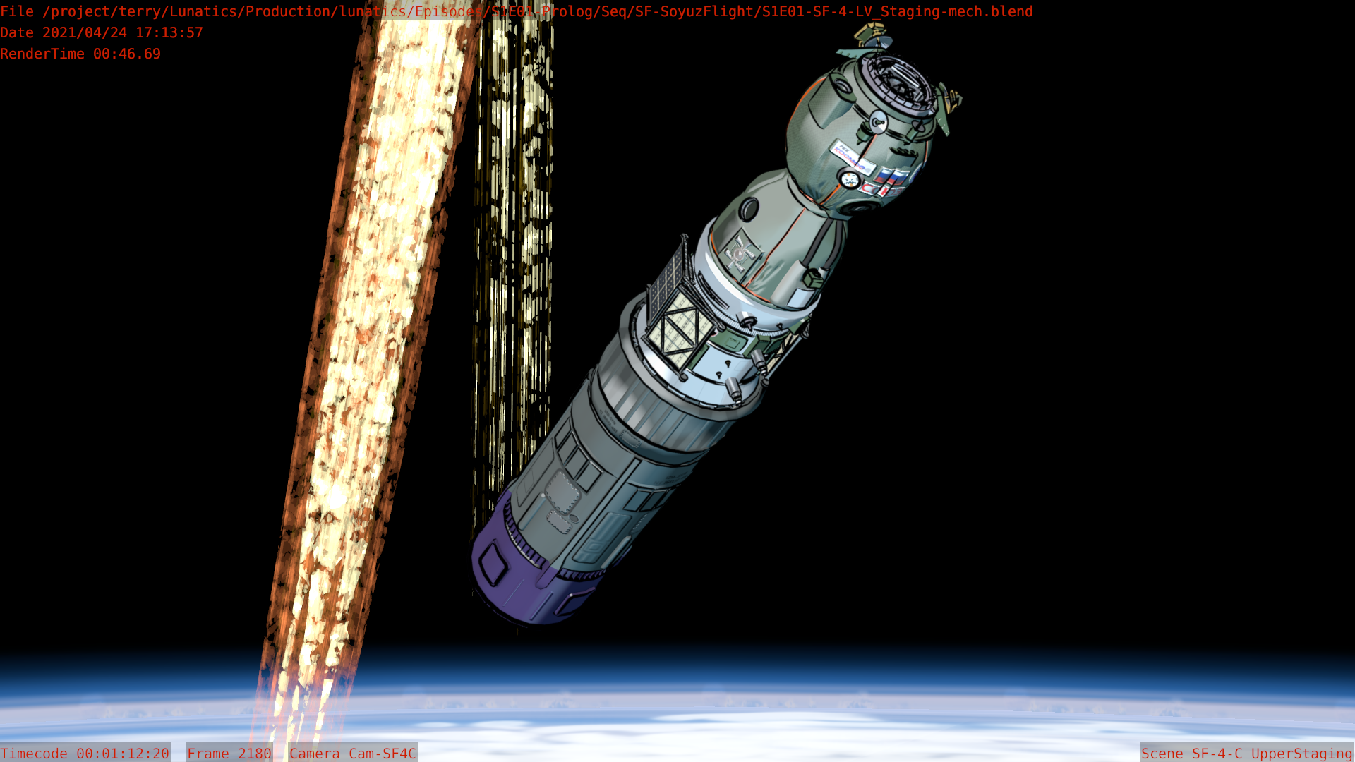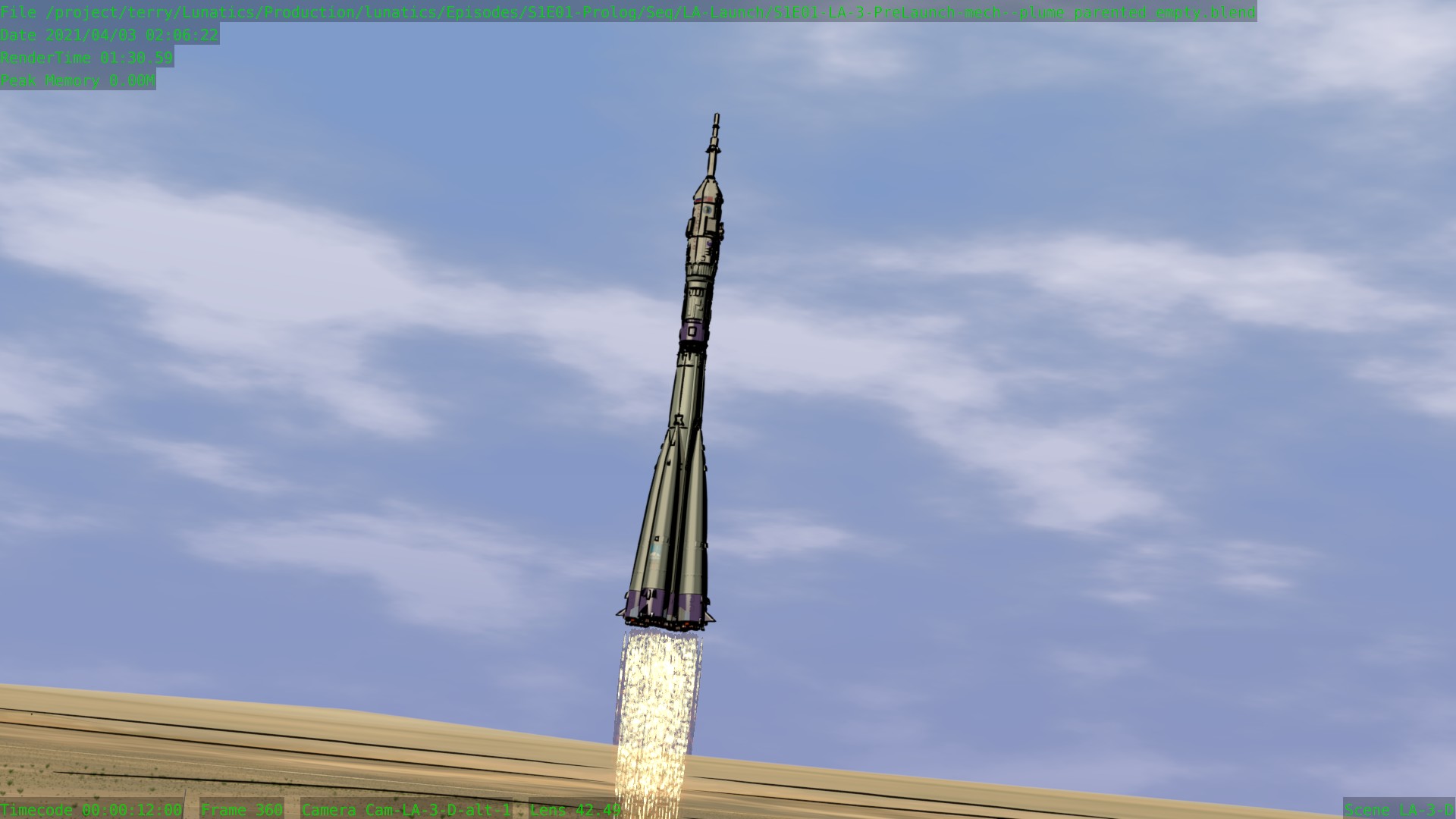 I did discover that I have entangled the control panel rigs for the core and pod stage rocket plumes — for this shot, they have to operate separately, so I’ll have to sort that problem out in the rocket plume effect file.