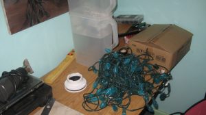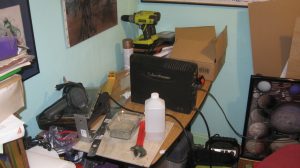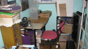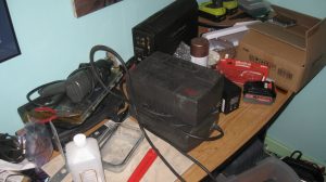 We had several UPS units which had failed and been taken out of service before 2013, which were in the shop during the fire. They had some external cosmetic damage, but it wasn’t clear whether they were damaged internally. The most likely problem was worn-out batteries. I bought a case of replacement UPS batteries and tried to refurbish the existing units. Two of the larger ones seem to be working. Two of them must have had other electrical faults, so I threw those out, after removing the old batteries — fortunately the battery shop takes the old ones for free (lead-acid batteries are hazardous waste and the lead can be recycled into new batteries).