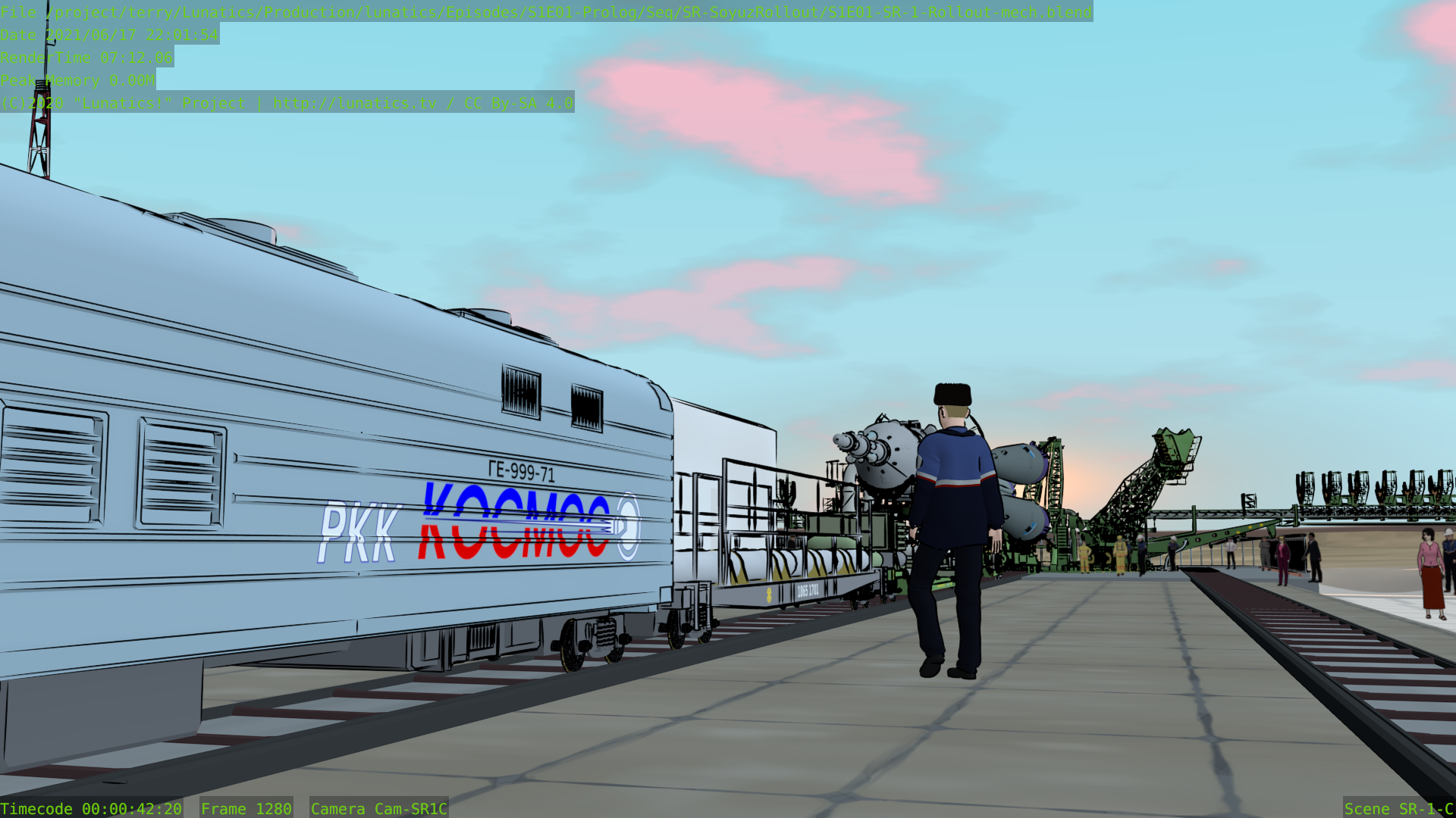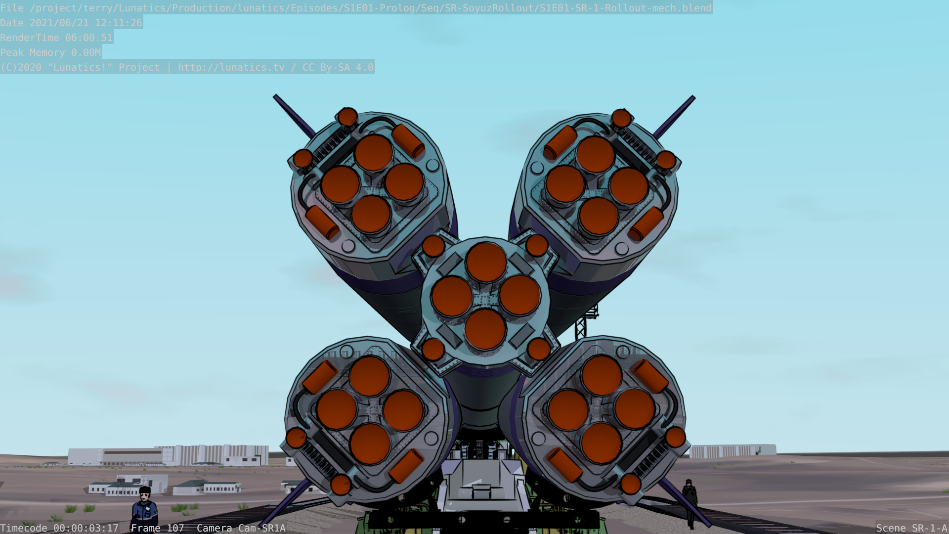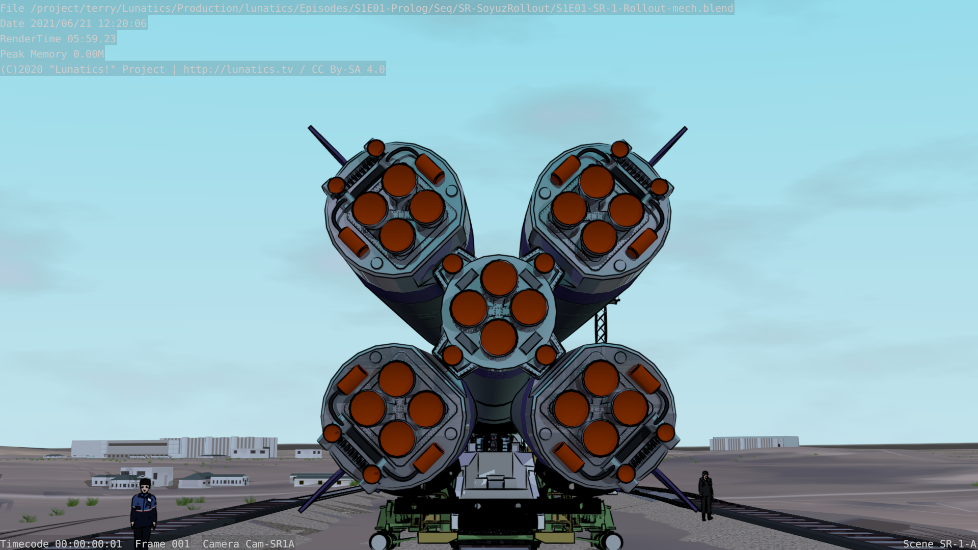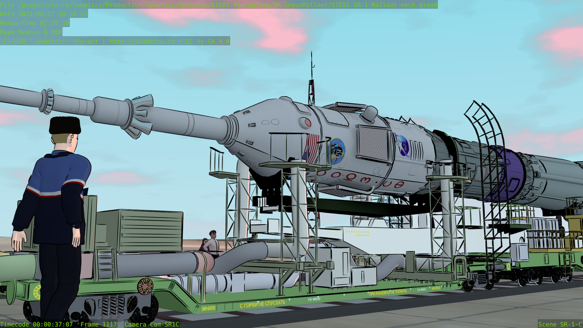 Anyway, I wound up using the current music, “Once Upon a Time” by A.K.1974, which is just the continuation from the introduction, so it kind of works as a reprise (I also used this track all together in one of my series trailers). It’s under CC By-SA, like most of the tracks in the pilot soundtrack. And it slightly changes the tone — the original was a bit more threatening (I was originally thinking of evoking the reality that the Soyuz launch vehicle is a converted early Cold War missile platform — the “R7“, which is one of many ironies about space development that I wanted to touch on in “Lunatics!”).