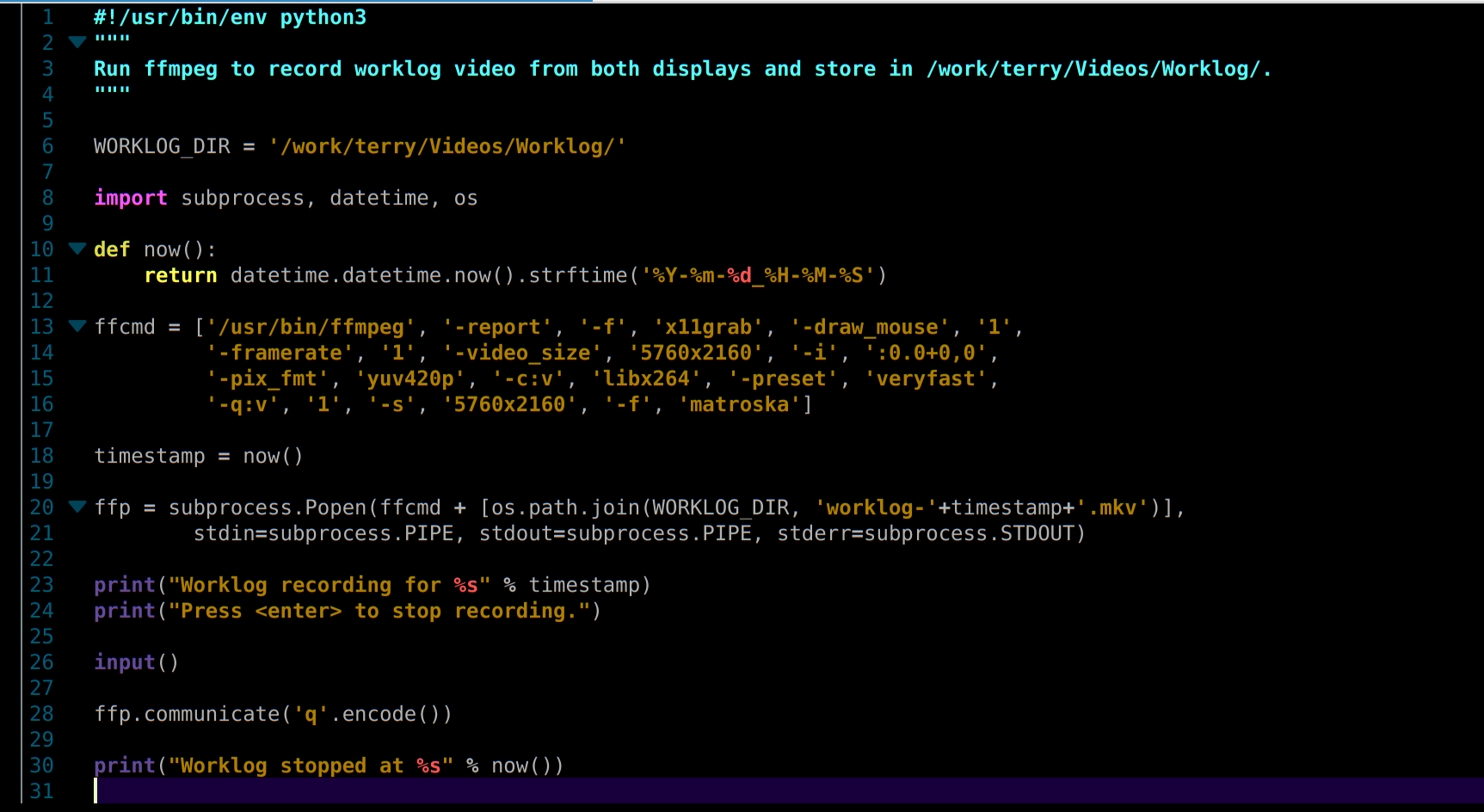 Changed from using Vokoscreen to using a custom Python script for taking my screen captures. This avoids problems with accidentally using the wrong settings and also saves the data direct to a permanent disk, avoiding the problem of losing video if the computer crashes.