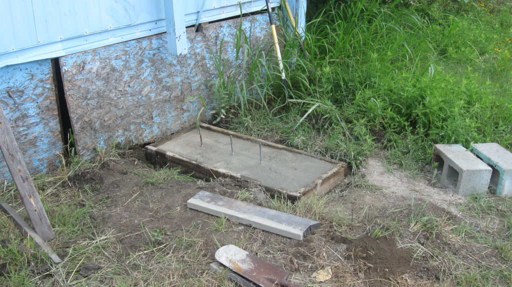 Also this month, I poured my very first concrete project. It’s a pier to support one of two “buttresses” we’re installing to replace the straight columns that are failing. Why we need this is a long story, but the scariest part was that I’ve never poured any concrete slab before. Honestly, the results are a little disappointing in appearance, but I think it’s going to do the job I need it to do.