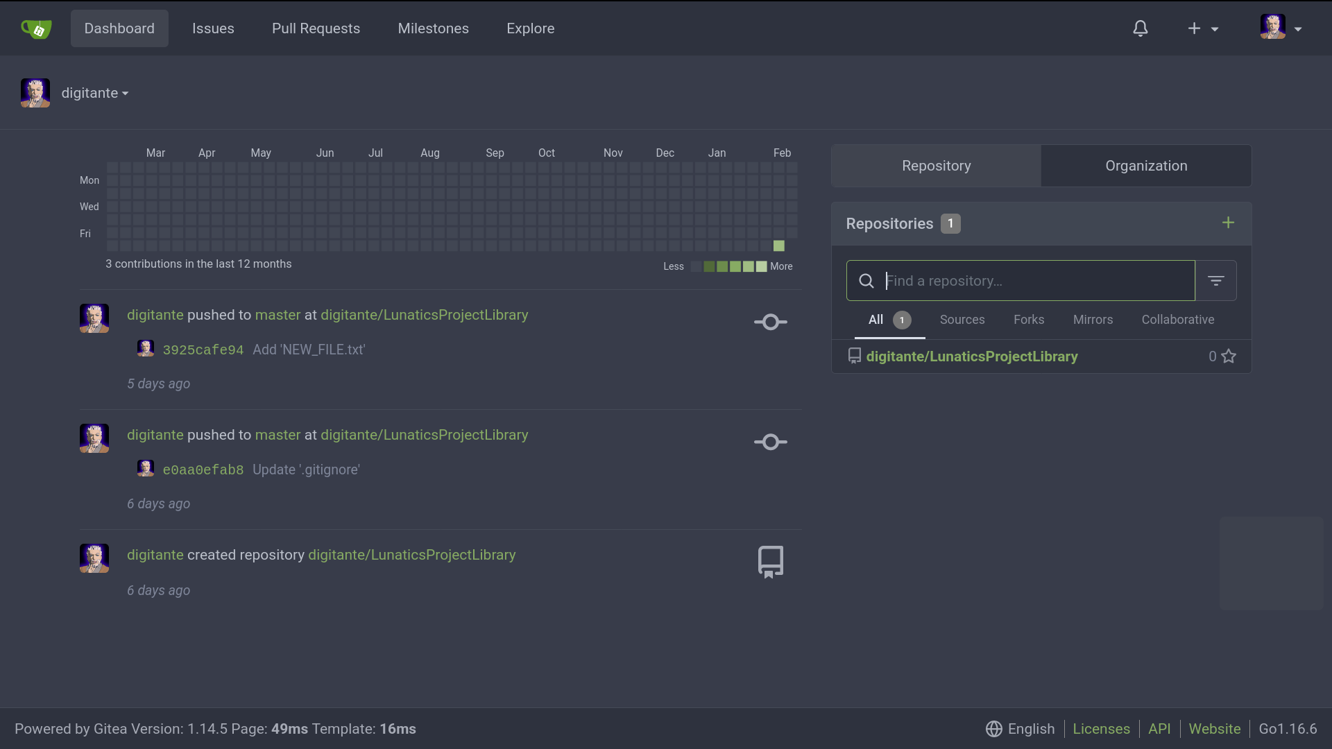 I also looked at GitLab, but Gitea seems like the better fit, to me. It’s more streamlined. Looks a bit more like GitHub, which I’m used to. And the design is fairly compact.