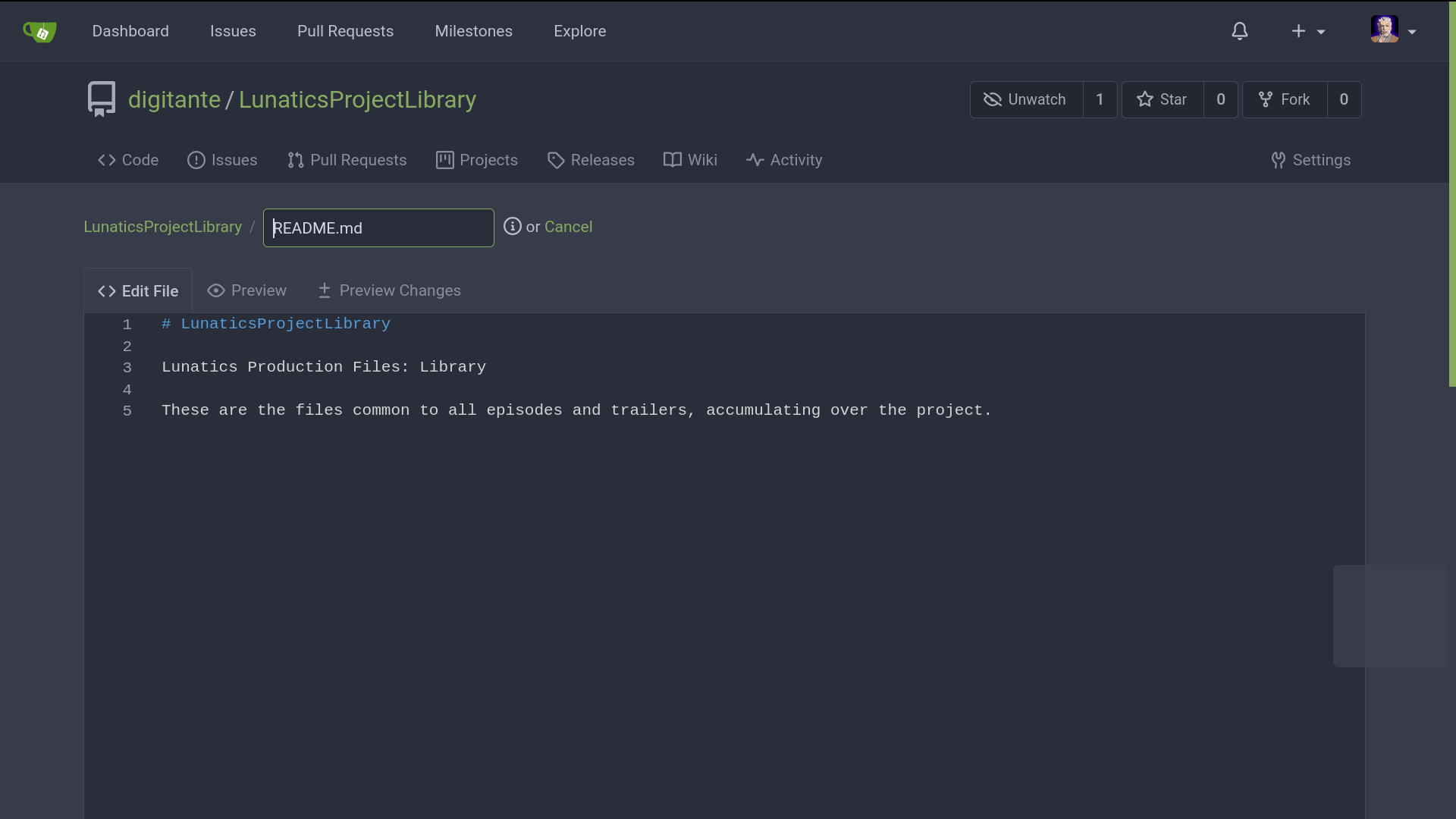 This way, all the contributor has to do is to check out two repos: the “LunaticsLibrary” repo and the episode repo they are working on (e.g. “LunaticsS1E01”). They must be adjacent to each other in a working directory.