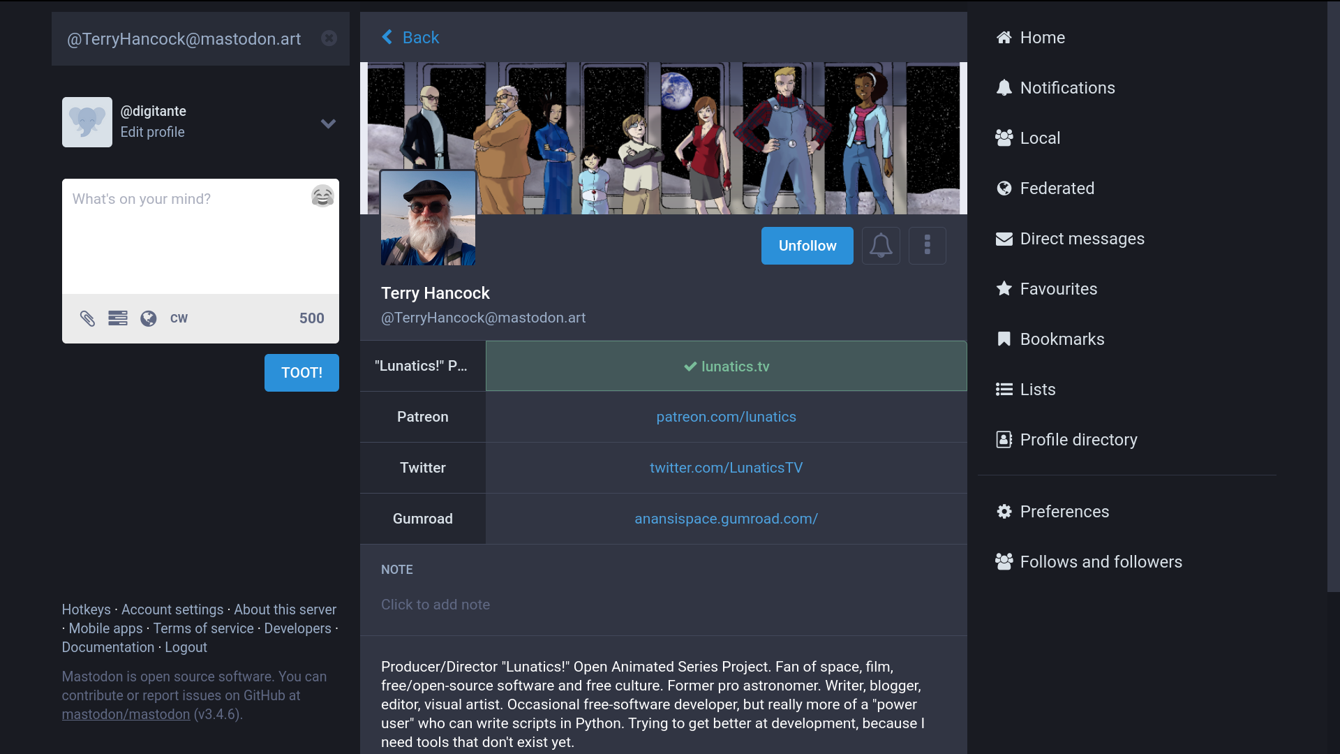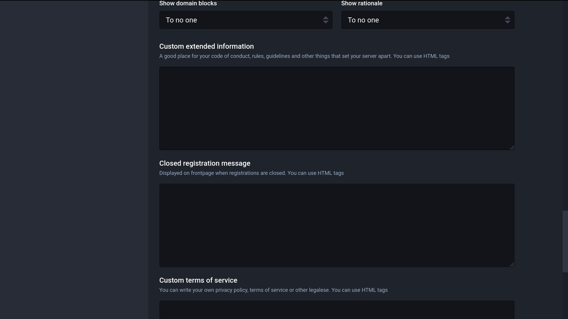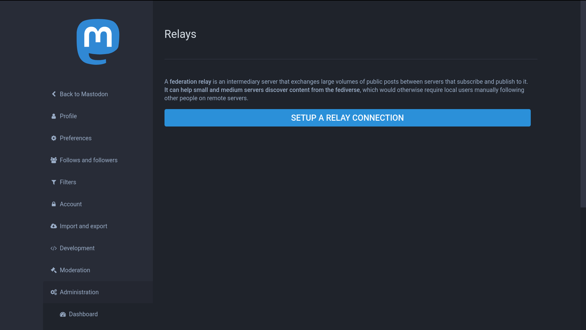 I took a lot of images of the administration interfaces for Mastodon after I had determined I wasn’t going to use it — for future reference in case I want to change my mind about the federated social media server.