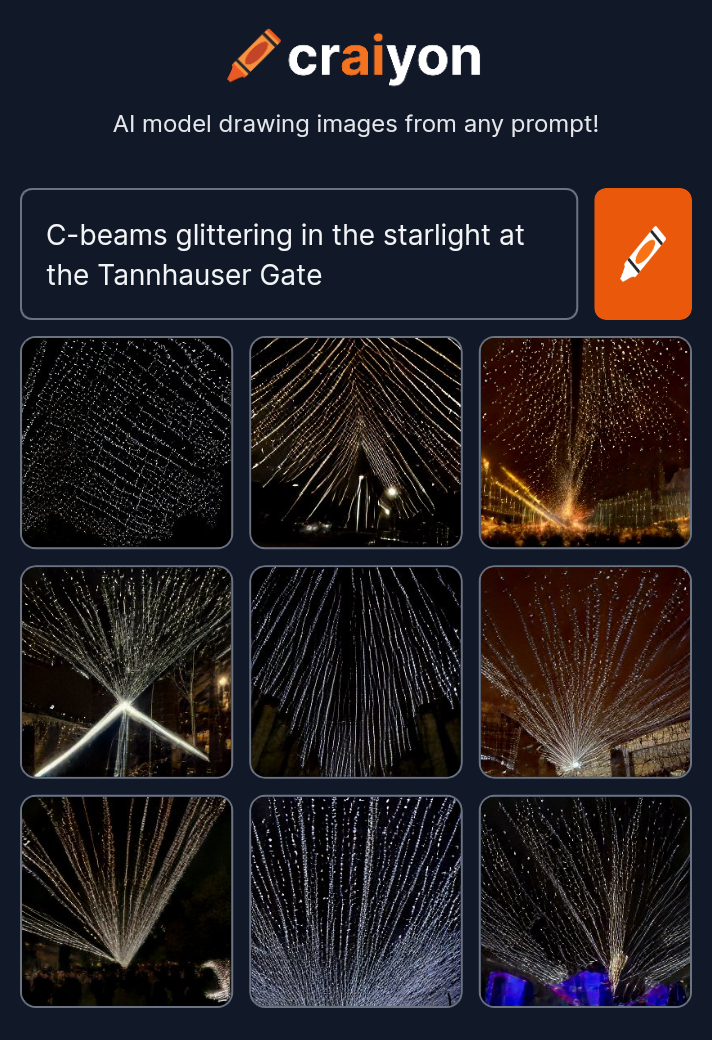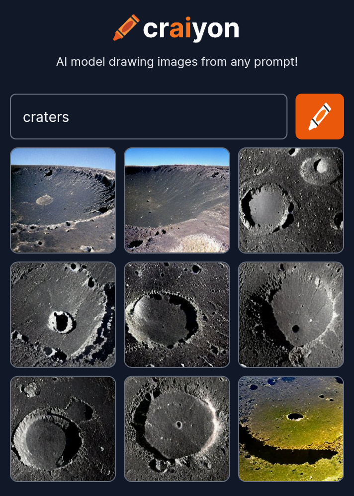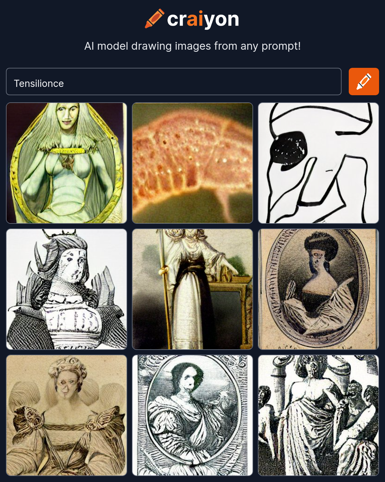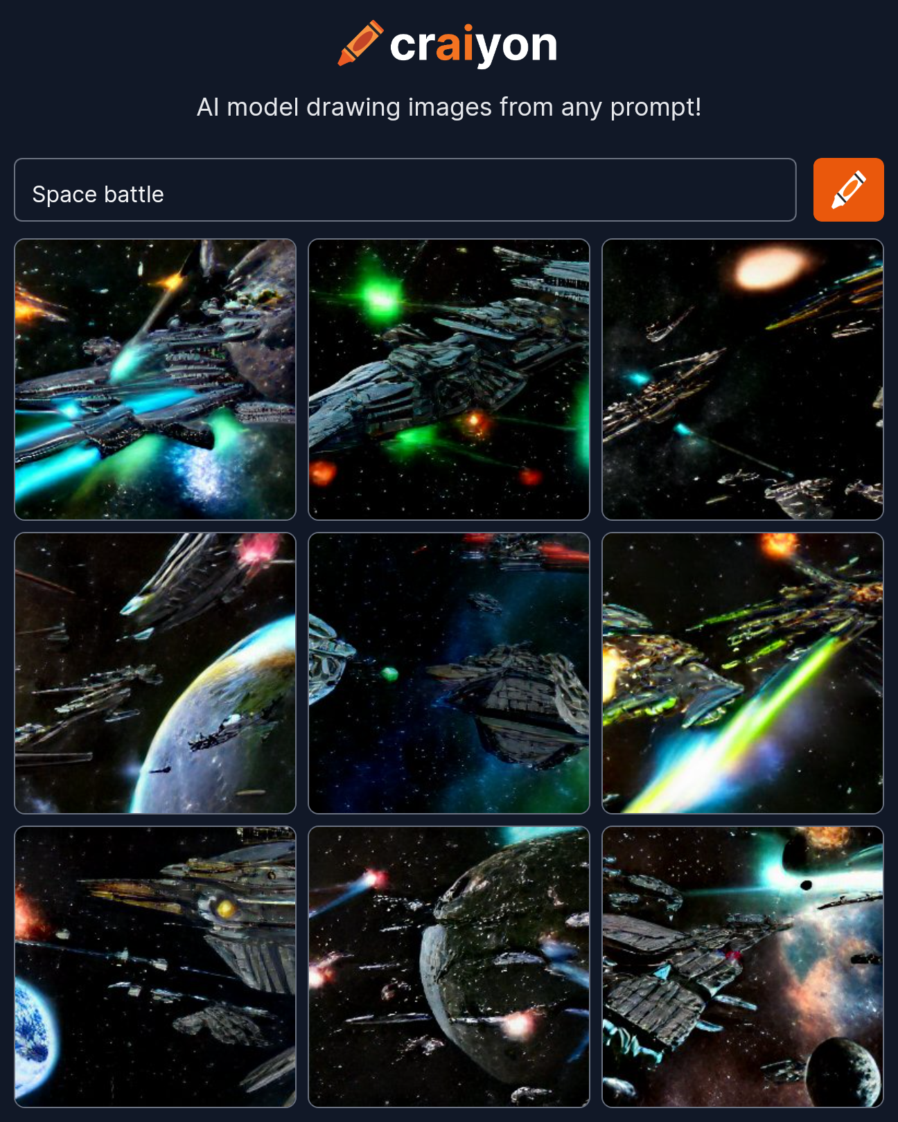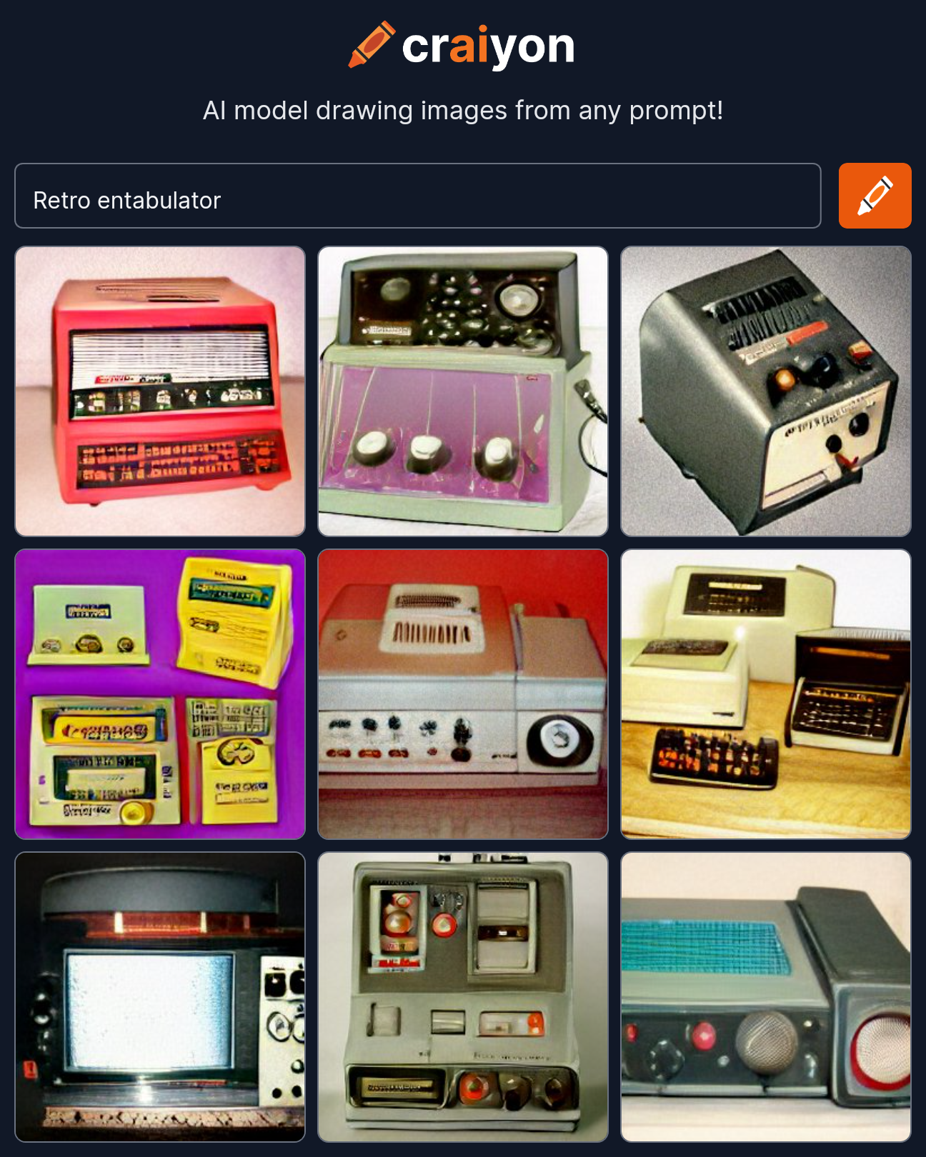 I was getting low on the allowed queries on my “basic” MJ account, so in the middle of the month, I did some tests with a different AI art generator, Craiyon. Craiyon doesn’t have the same nice terms as MidJourney and doesn’t generate the high-resolution images, but it is free to use, and provides a nice way to explore the technology.