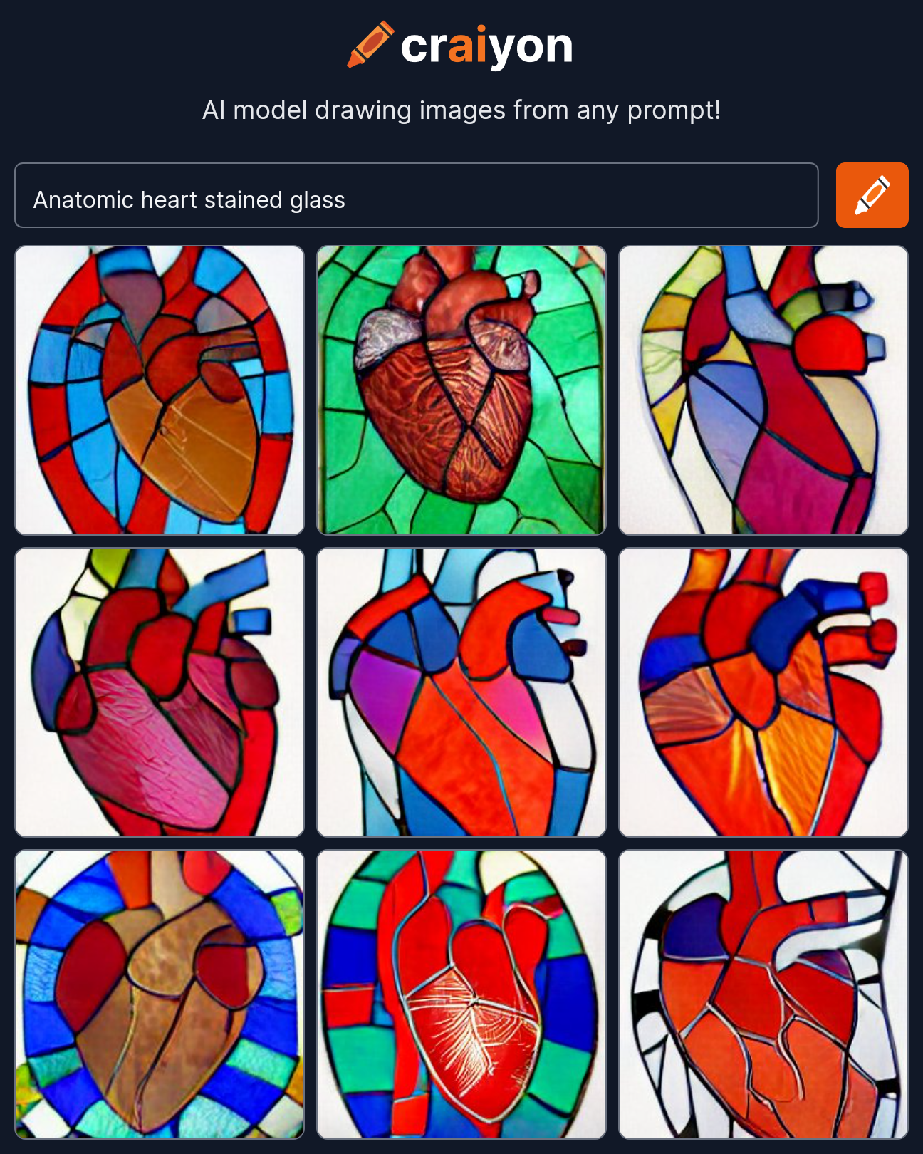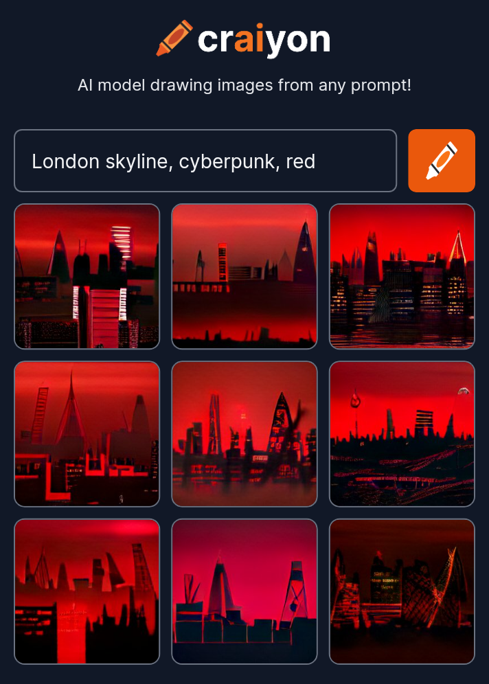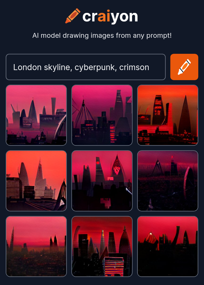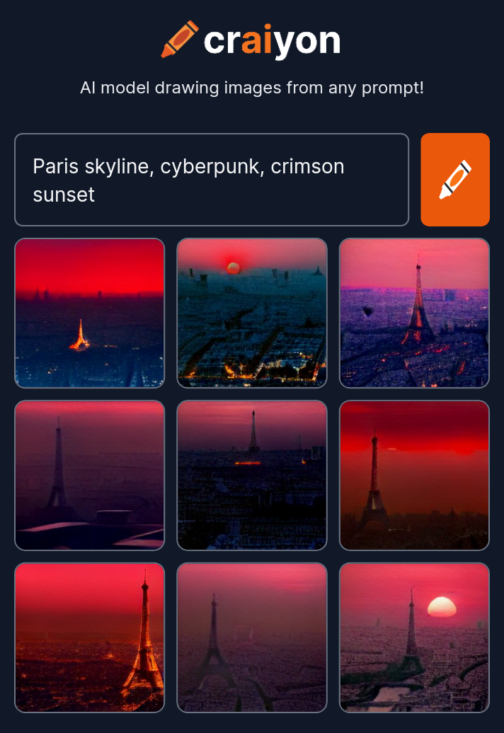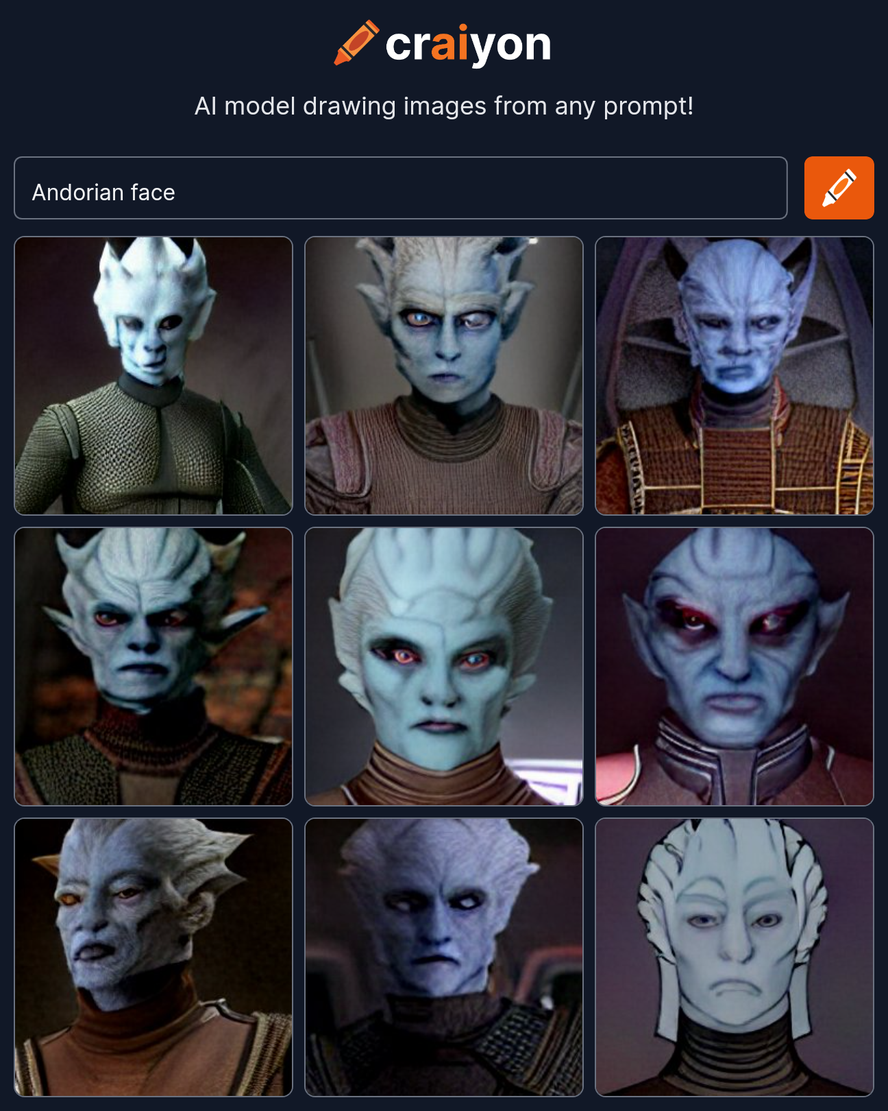 I was getting low on the allowed queries on my “basic” MJ account, so in the middle of the month, I did some tests with a different AI art generator, Craiyon. Craiyon doesn’t have the same nice terms as MidJourney and doesn’t generate the high-resolution images, but it is free to use, and provides a nice way to explore the technology.