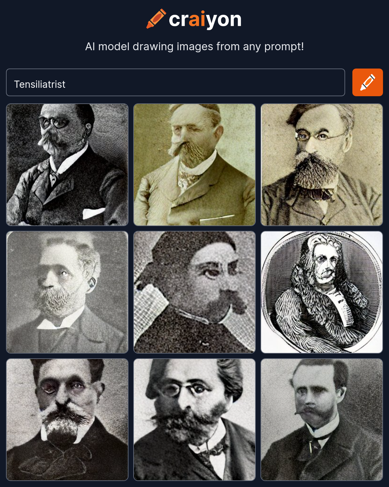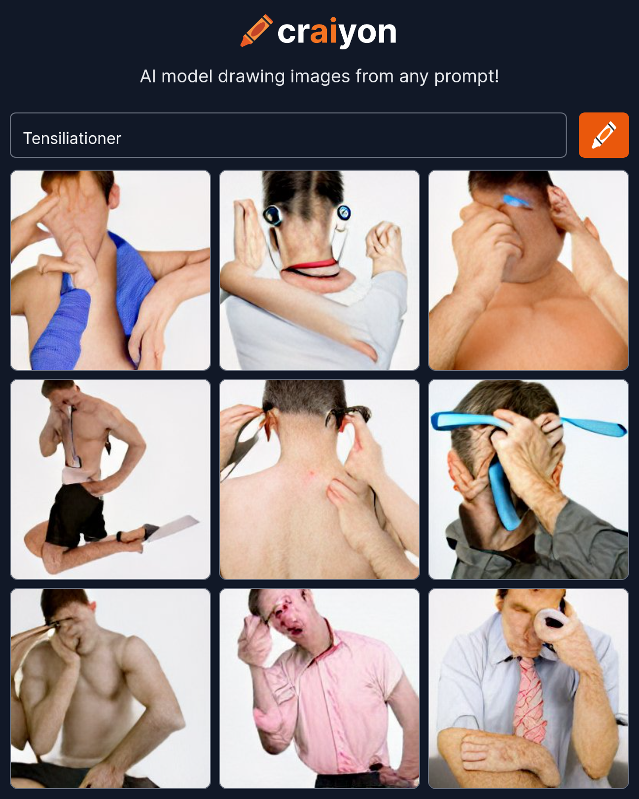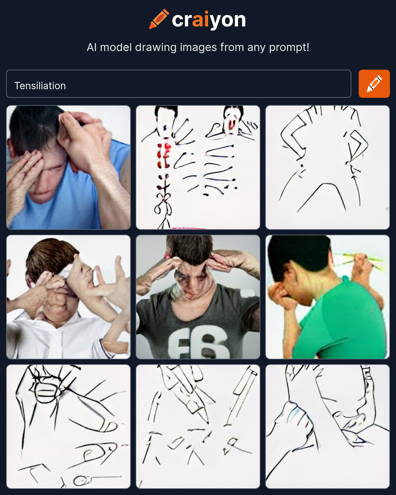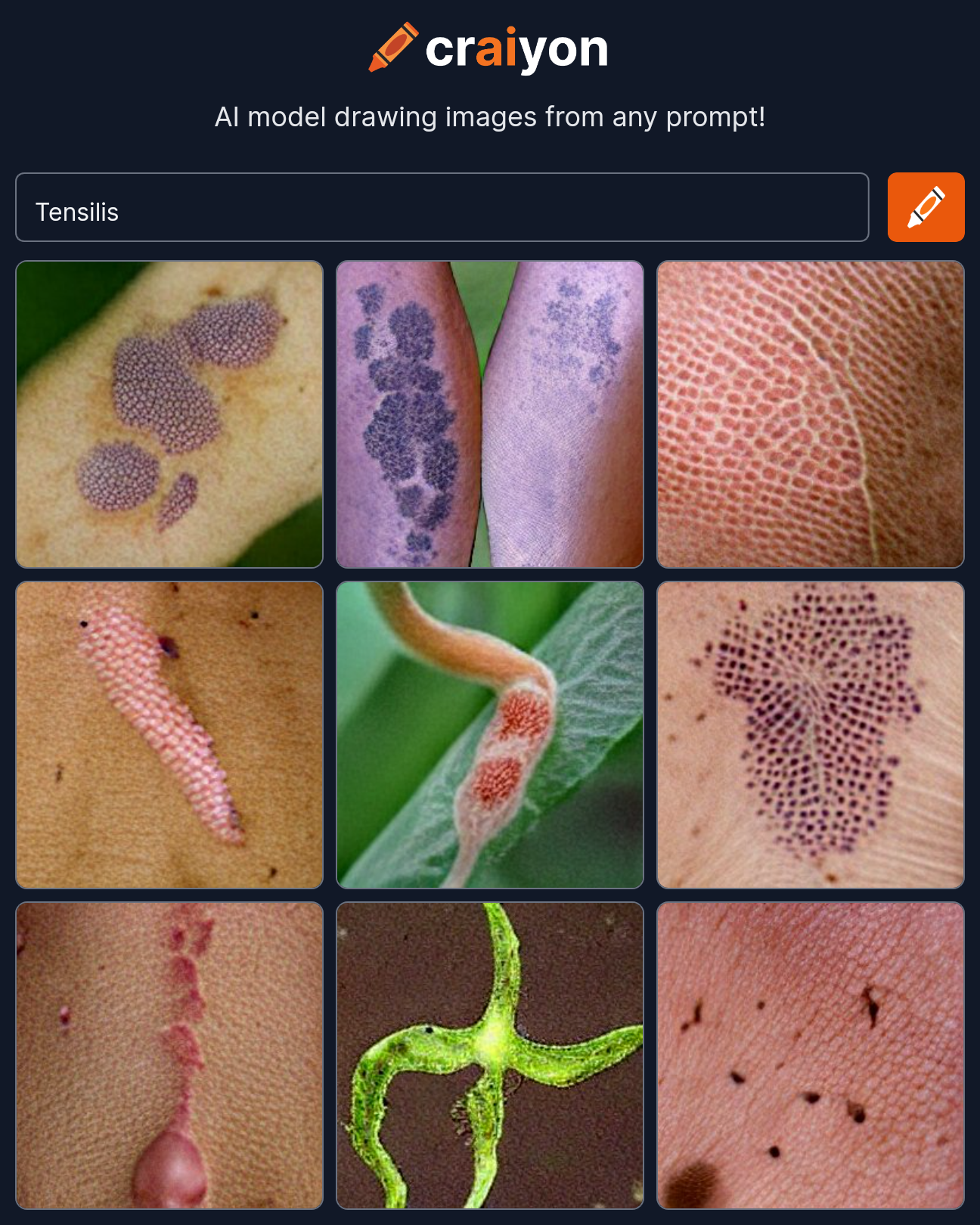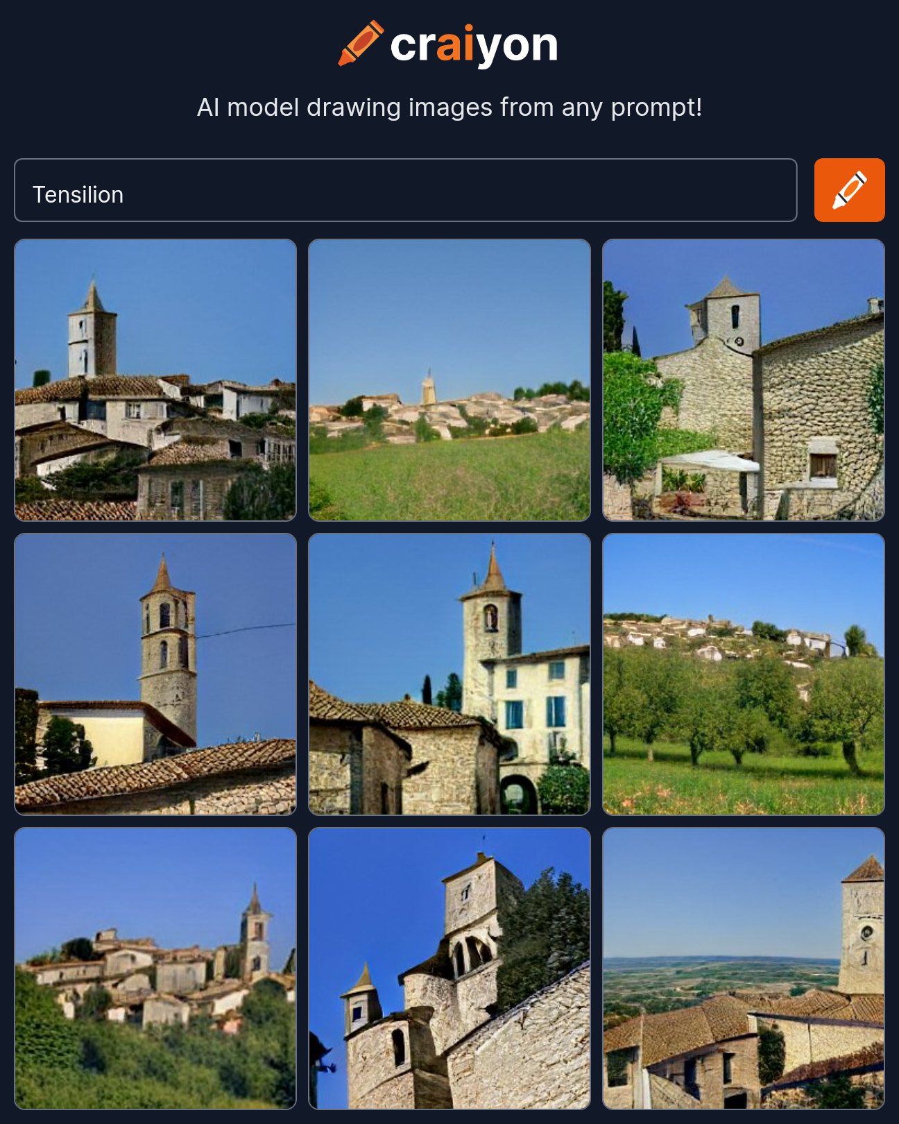 I was getting low on the allowed queries on my “basic” MJ account, so in the middle of the month, I did some tests with a different AI art generator, Craiyon. Craiyon doesn’t have the same nice terms as MidJourney and doesn’t generate the high-resolution images, but it is free to use, and provides a nice way to explore the technology.
