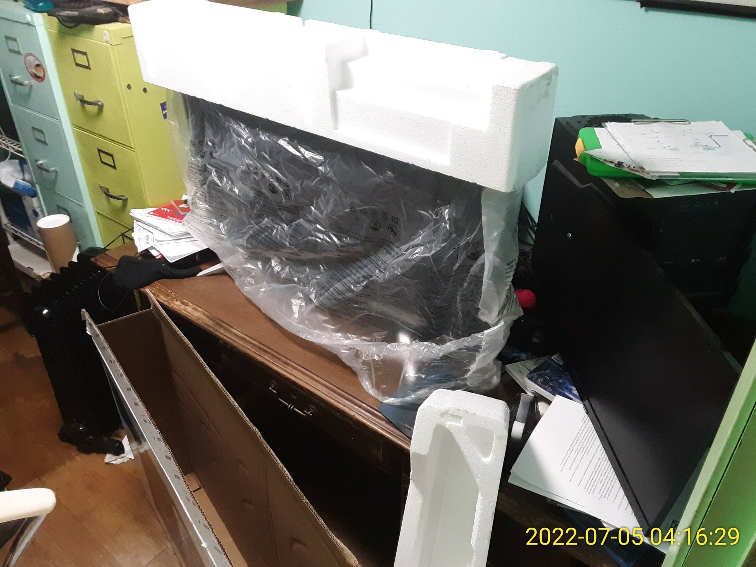 Packed up the large monitor to see if I can get it repaired or replaced. Set up the smaller monitor as a single display. Fixed the broken door handle on the front of the studio.