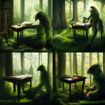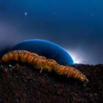 It can be a little hard to steer the AI where you want it to go — I actually asked for the indigo jungle to appear in the shot with the caterpillar, but I couldn’t make it happen in one render. MidJourney sort of drops things if it can’t figure out how to make it work.