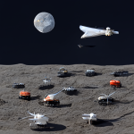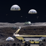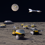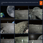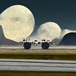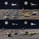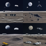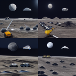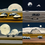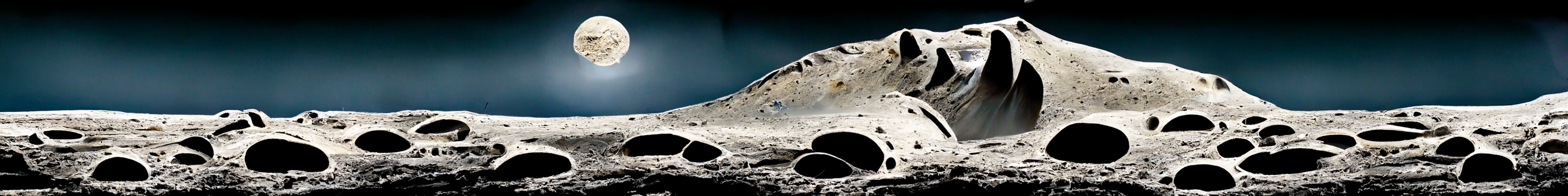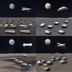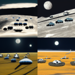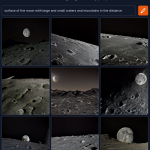 Unfortunately, I don’t think MidJourney will be much use for the Moon. My attempts to create similar backdrops of the lunar environment have been disasters. I think there must not be enough NASA photos in MidJourney’s training set! It acts like it has seen more cartoon moons than real ones — and it keeps wanting to put the moon in the sky, too. Sometimes multiple times: