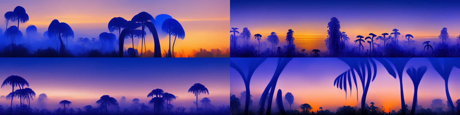 Landscapes, revisiting the “indigo jungle” and “fir forest” prompts: