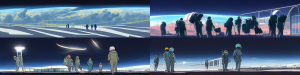 And finally, I retried some of the more successful prompts from the version 2 experiments, but using version 3 this time. The spaceport seems like an improvement, but I think I liked the version 2 “clothing market” results better.