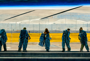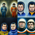 Some astronaut portraits (I was actually trying to see if maybe it could do better for the wall portraits I actually used in the back of the press conference scene, but I don’t think so):