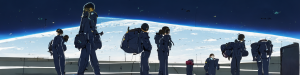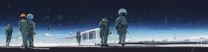 Sometimes MidJourney gets a little more creative than I expect it to. One of the renders for this prompt invented an anime character in the foreground of the shot (no doubt triggered by the “anime style” prompt):