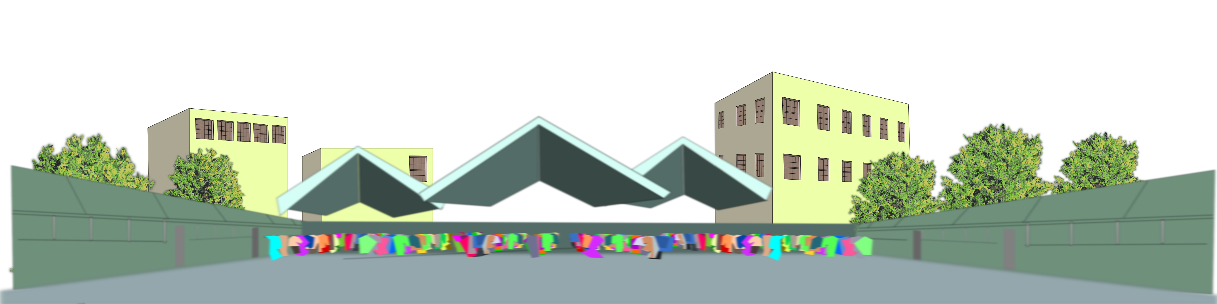 I used several billboards like this, and then a large backdrop in the very back of the shot, with some architectural elements: