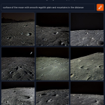 And I went round and round trying to get something like a realistic Moon surface horizon. One insight was: “Don’t say ‘Moon’!” Of course, it kind of makes sense, if you said “Earth” it’s going to try to draw the whole Earth, not a typical field in the prairie. So I tried various ways to describe the lunar surface: