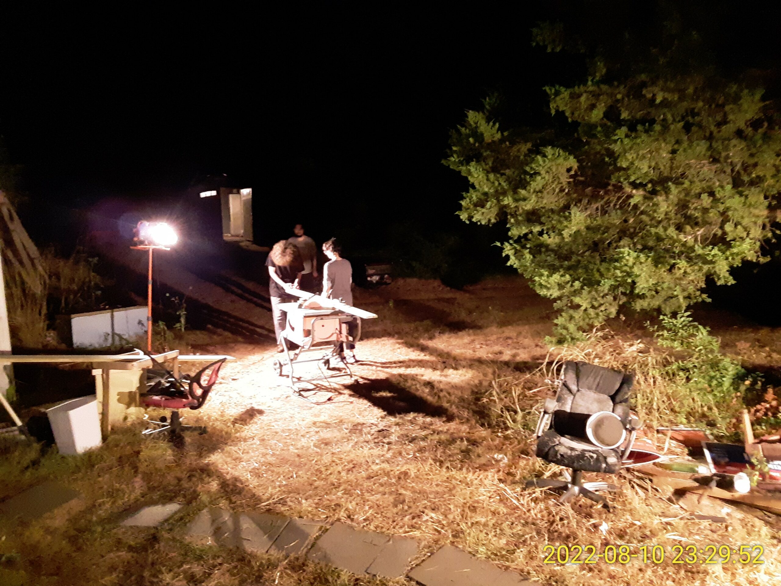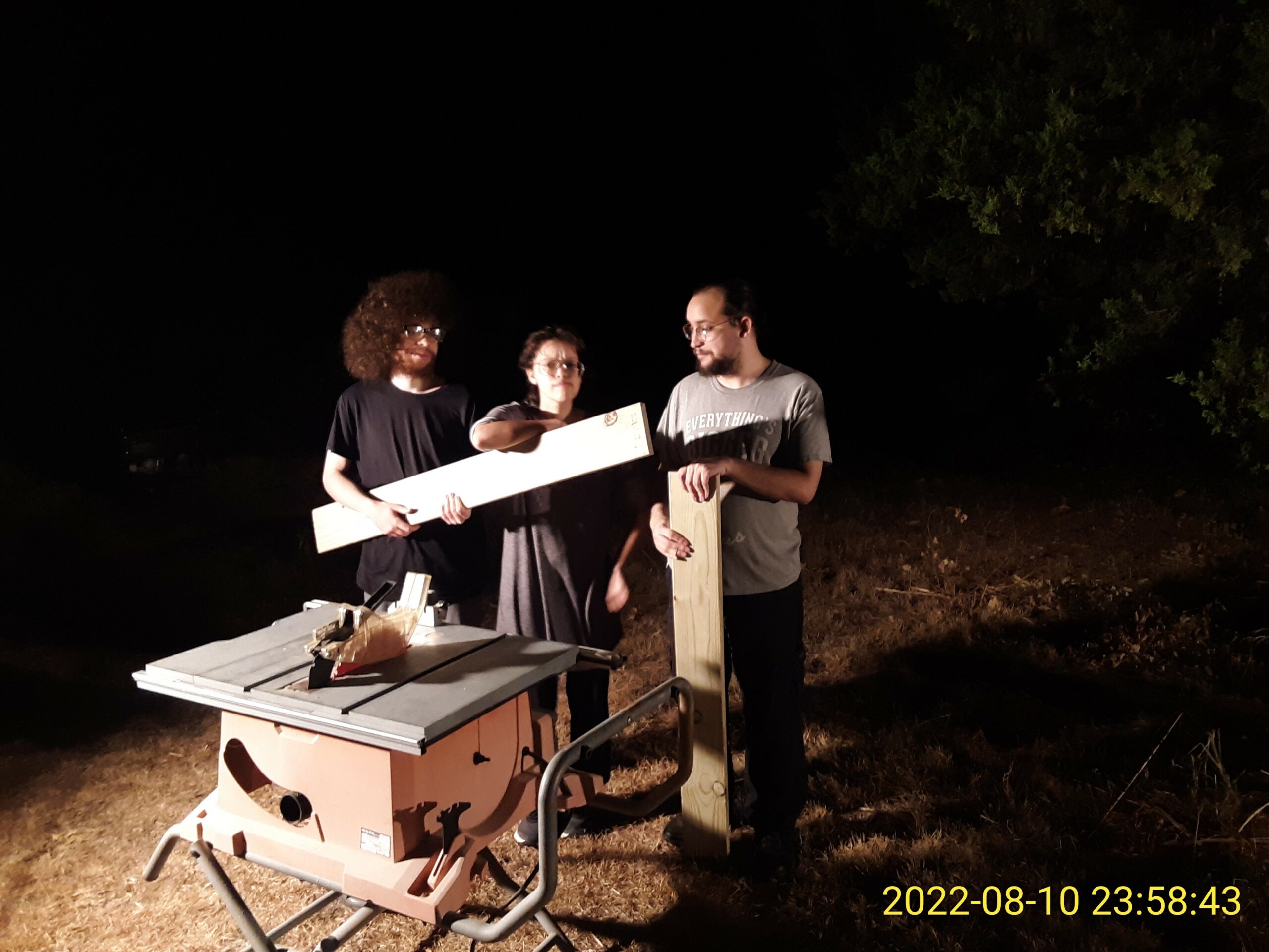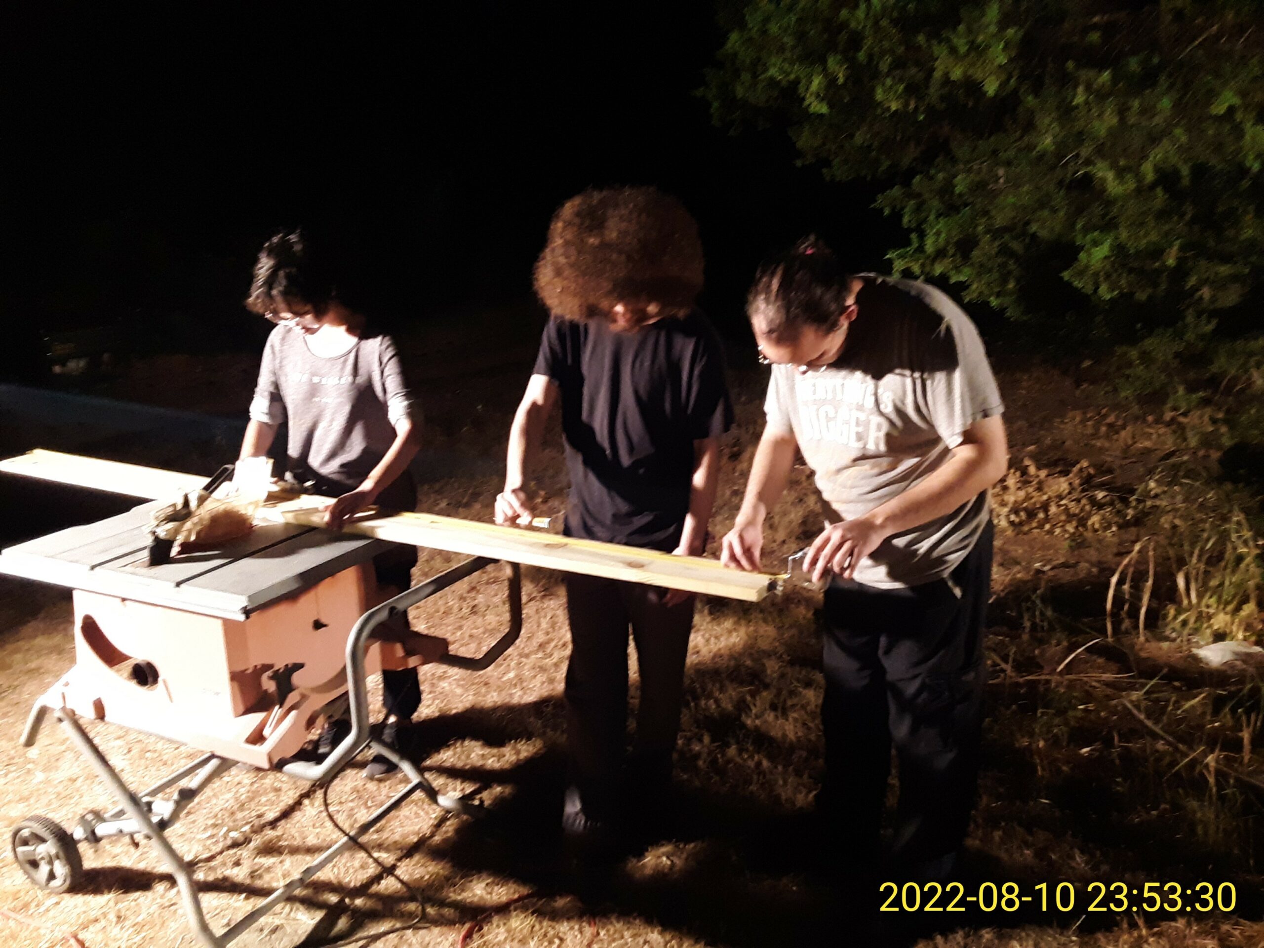 Purchased lumber and started cutting for the back steps. We did this at night with the work lights, and I taught my kids to use the table saw and cut the required boards. Got a little bogged down when I realized I had bought 5-step risers instead of the 4-step. This is probably fine for the back steps, though (perhaps better?).