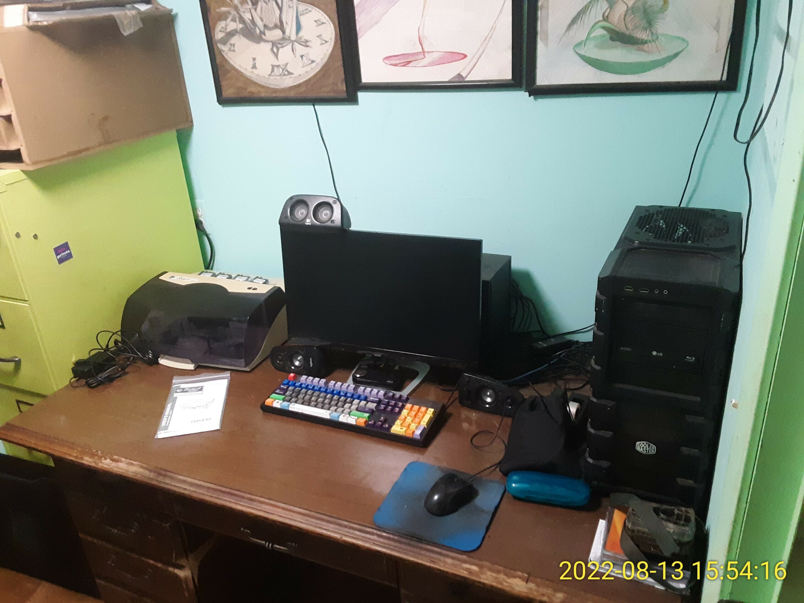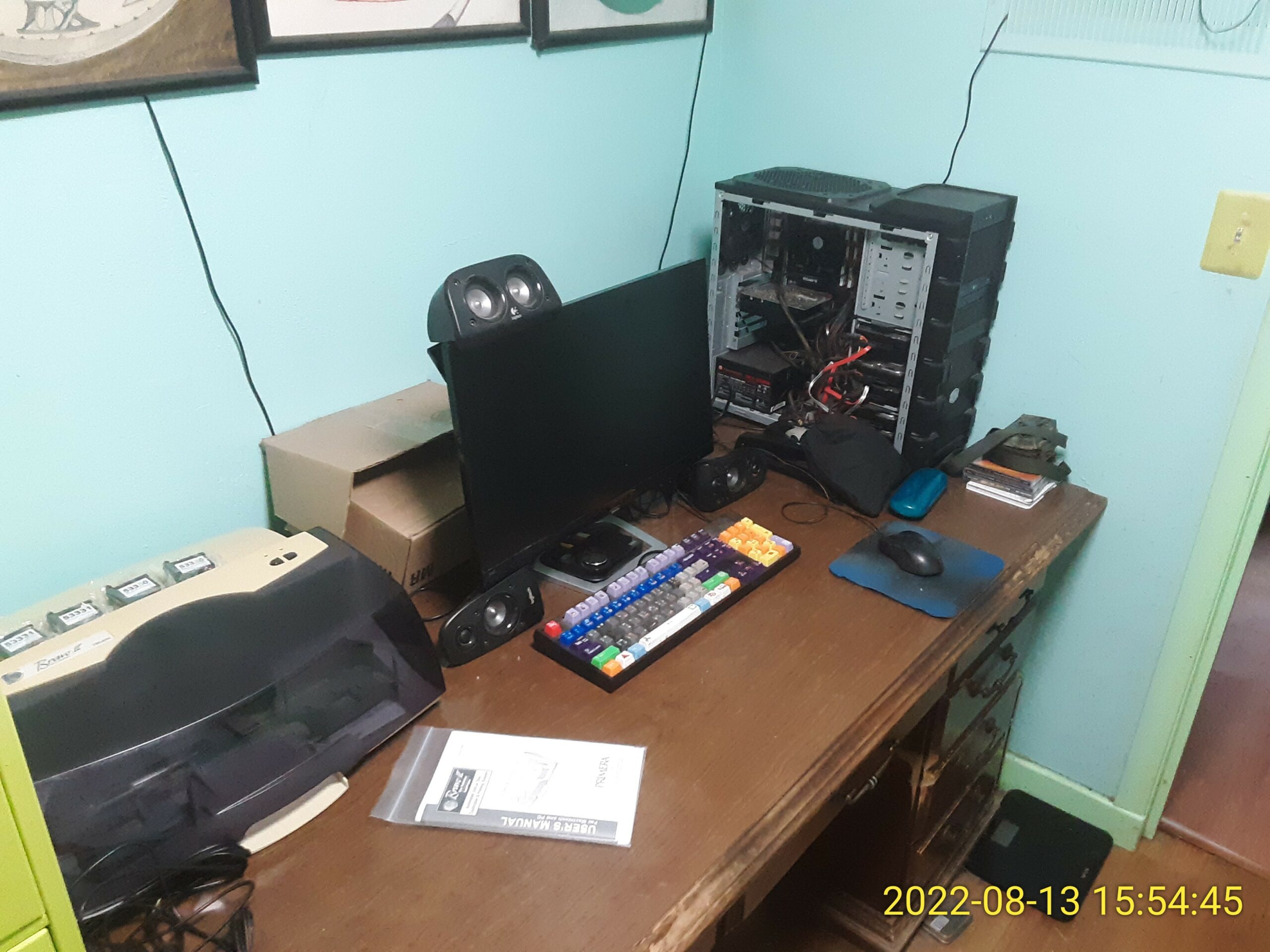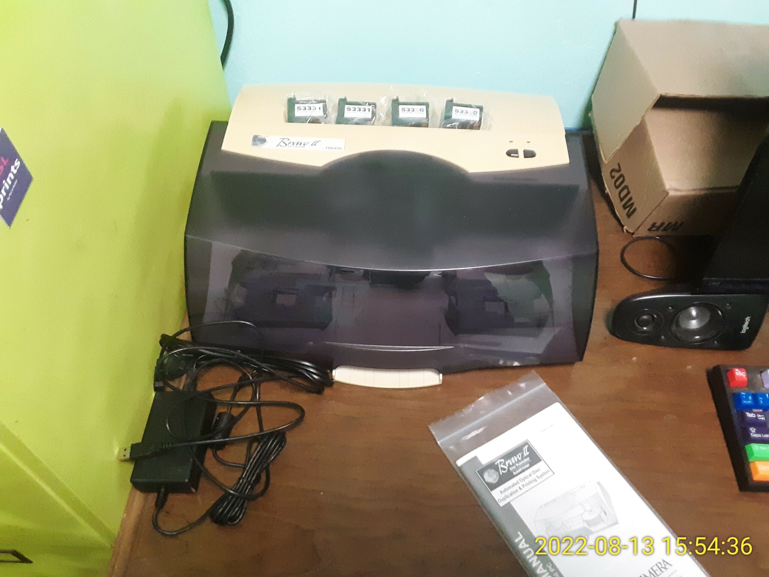 Made space and set the disk duplicator up on my desk. This will be a good location for it for experimental work. But it will be a challenge to keep the space clean.