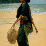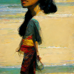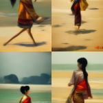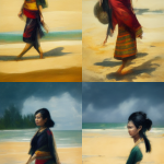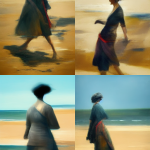 Various women walking on a beach / portraits. Was trying to get better faces, using “portrait”, but it takes it pretty literally: