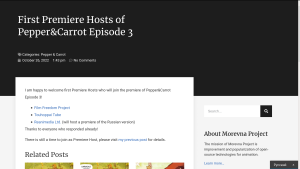 Published Morevna Project’s animated version of Pepper & Carrot, episode 3, “The Secret Ingredients” as a “Premiere Host” on our Film Freedom PeerTube.