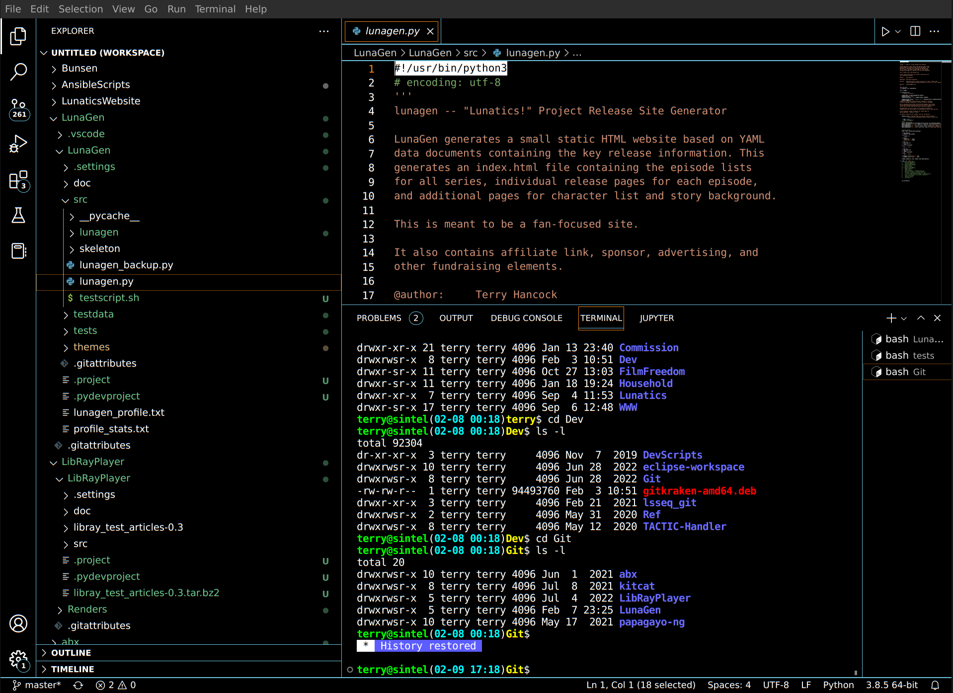 Worked on LunaGen. Transitioned to using VSCodium instead of Eclipse, and got the tests working (except the vidoe embedding, which seems to have been broken by no-embedding policies on the videos I was using).
