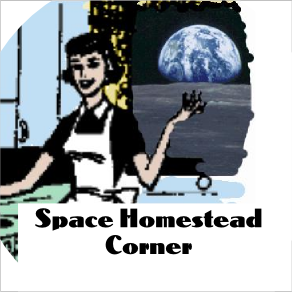 The first product of this interrogation of the problem was the “Space Homestead Corner” that Rosalyn developed on our Anansi Spaceworks website. This was a column that focused on the domestic side of what living in a space homestead would be like, usually featuring some topic that could be explored here on Earth, under more normal circumstances. It opened with a tongue-in-check “50s housewife” image in front an Earthrise, and later columns appeared with a woman in traditional Indian dress, apparently tending plants in a Martian greenhouse. We’d intended to do more cover designs, with the same sort of juxtaposition, but these were as far as we got.