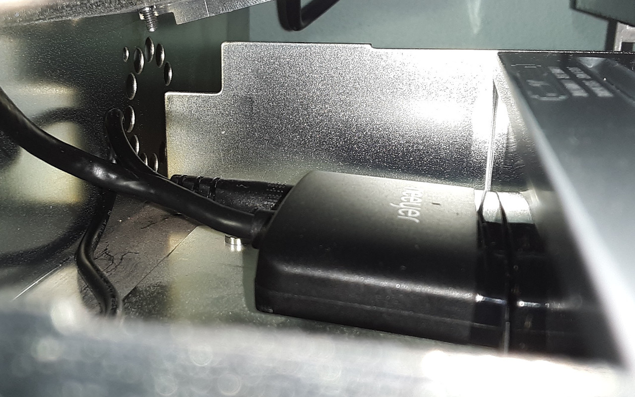 I was not sure if the new USB adapter would fit in the available space, since it’s a different design. So the first thing I did was a test-fit, by sliding the drive, with the adapter connected, into the available slot. There was ample room, so no problem there!