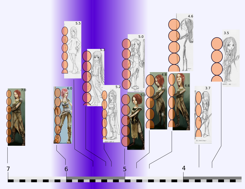 A chart showing possible character styles, based on concept art produced for “Sintel” (Blender Durian Project).
