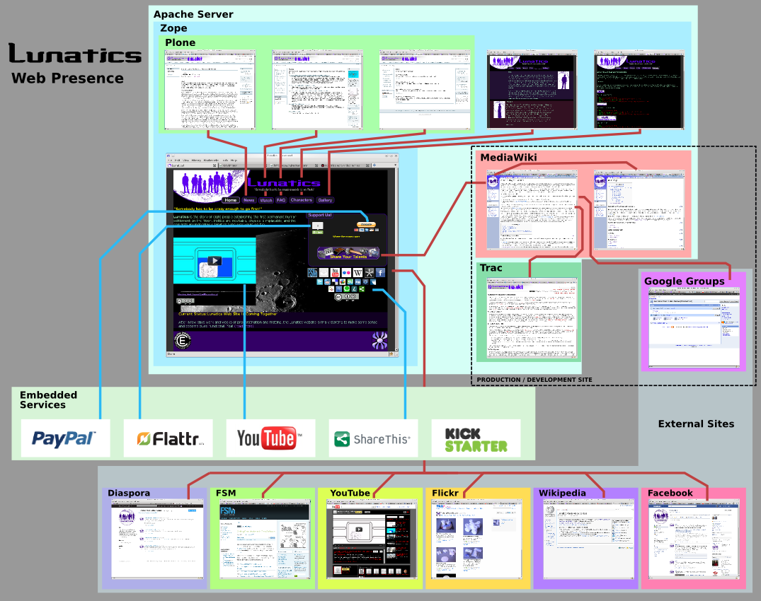 Because I already had a Zope/Plone based website setup, I used the same to create the initial site for Lunatics Project. This became increasingly difficult to maintain as Plone became a less popular platform, and eventually we switched to WordPress in 2014, with the help of Elsa Balderrama, who designed a custom WordPress theme for the project.