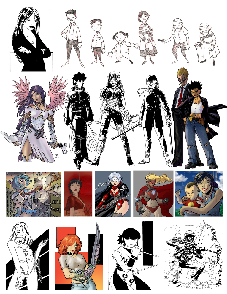 Original Kickstarter Graphic, with Silhouette Characters Prior to Daniel Fu’s versions.Collage of character art work from Daniel Fu’s 2011 portfolio. (Artwork (C) Daniel Fu / All Rights Reserved)
