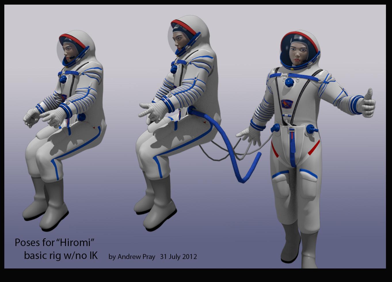 Andrew Pray’s version of Hiromi, created in 2012. We kept the spacesuit, but the model of Hiromi herself was replaced later.