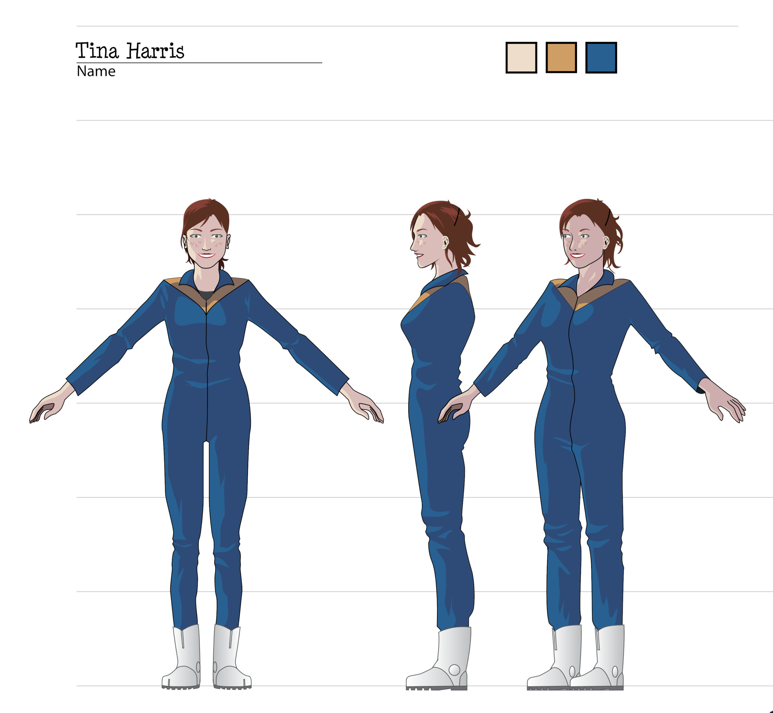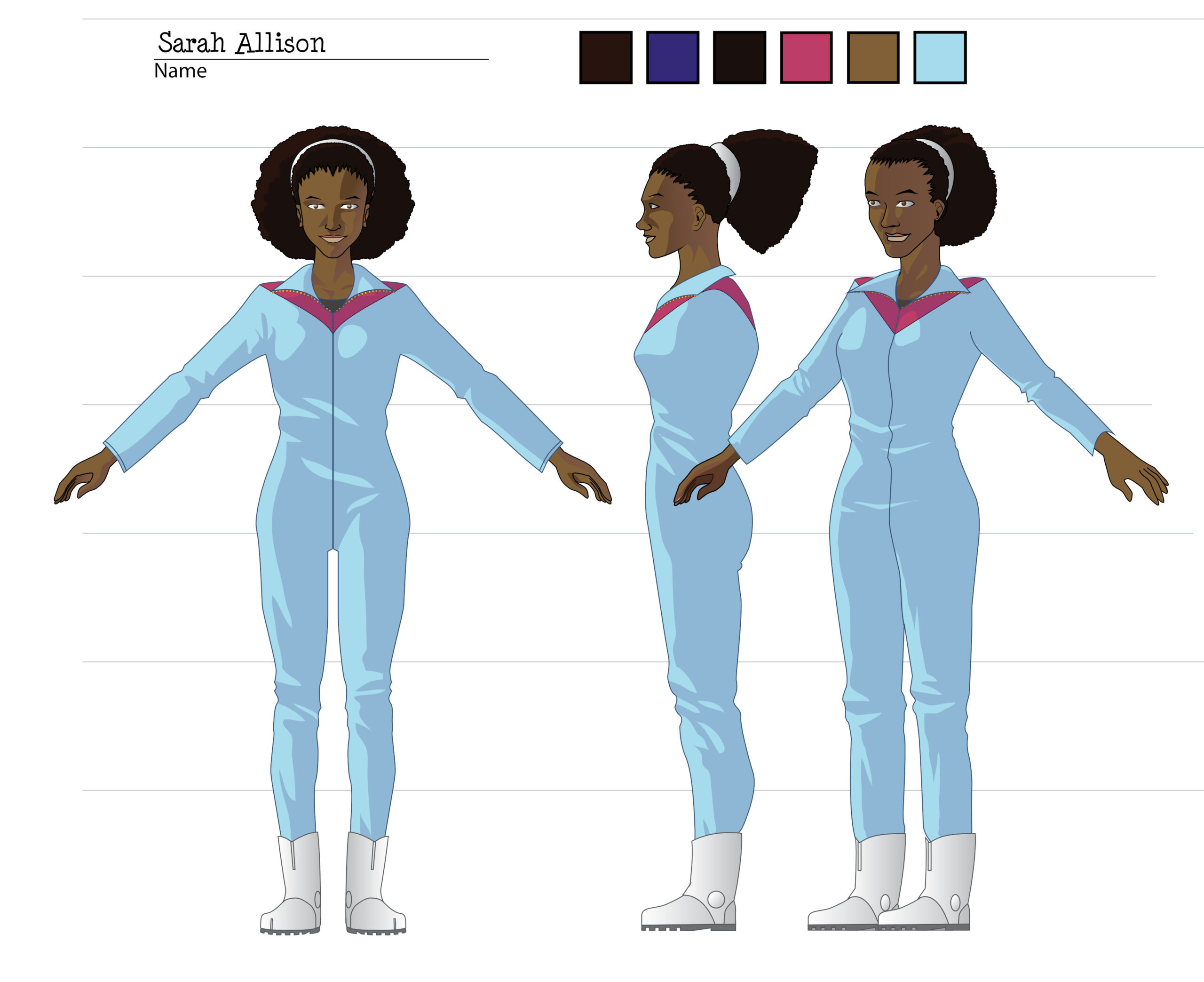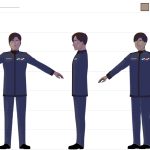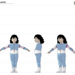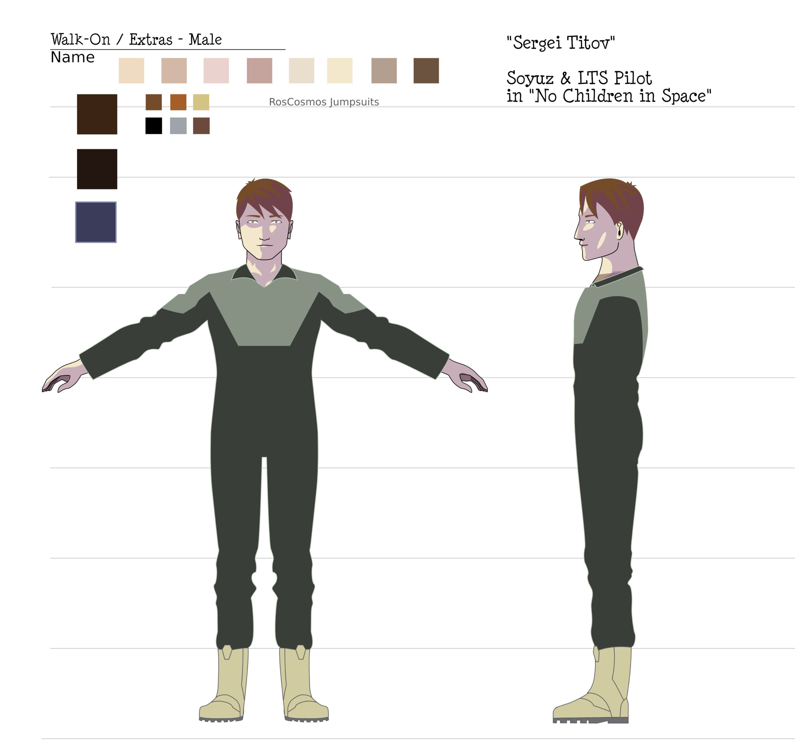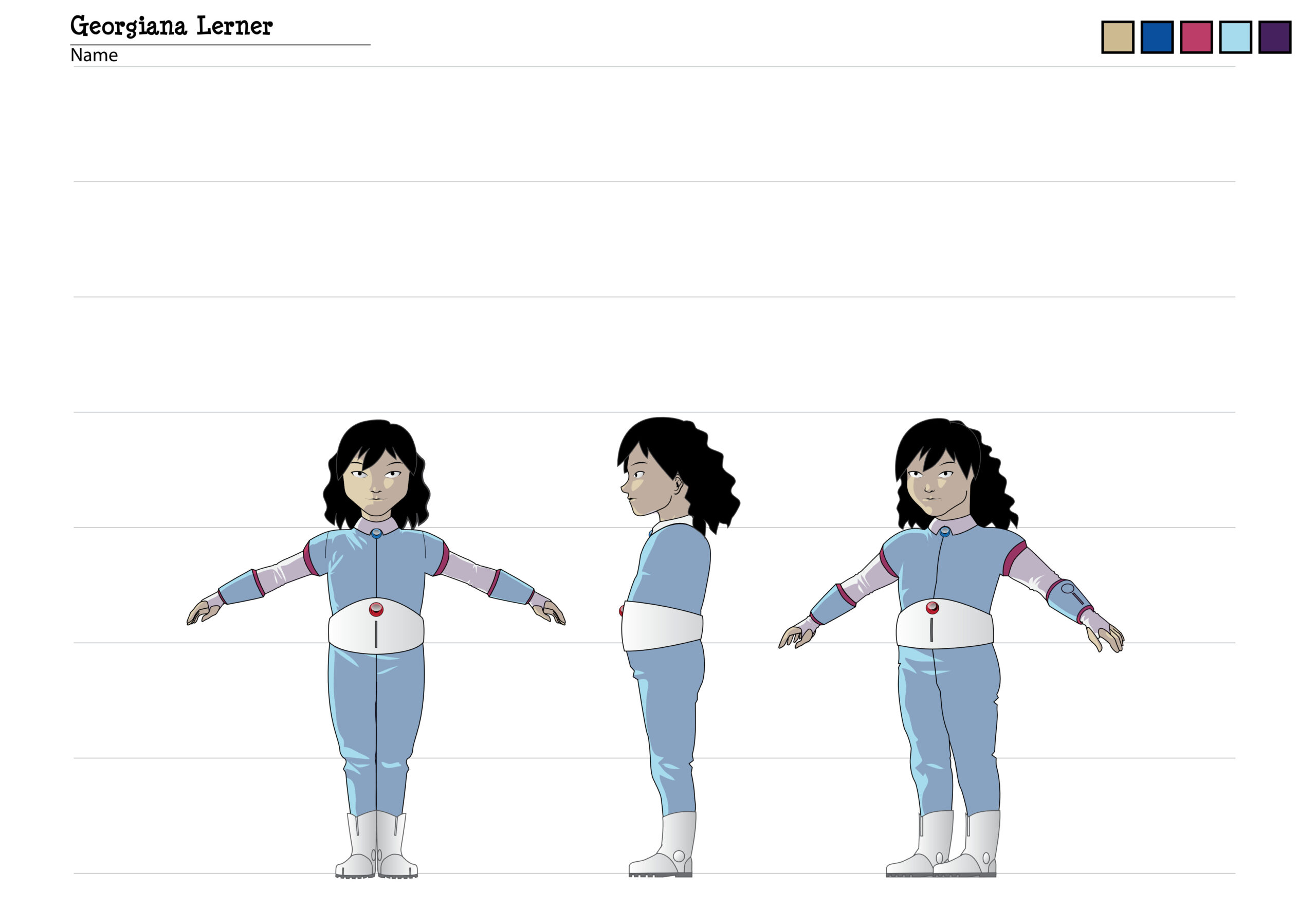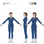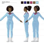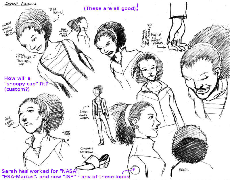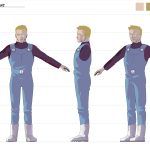 During the process, Andrew Pray, did create models for the spacesuits and the first version of Georgiana & Hiromi in spacesuits, which looked quite different from the model we settled on, and wasn’t not super-accurate to the concept art, but I was happy to let Andrew introduce his own style, thinking that it would be applied to all the characters, so they would be consistent.