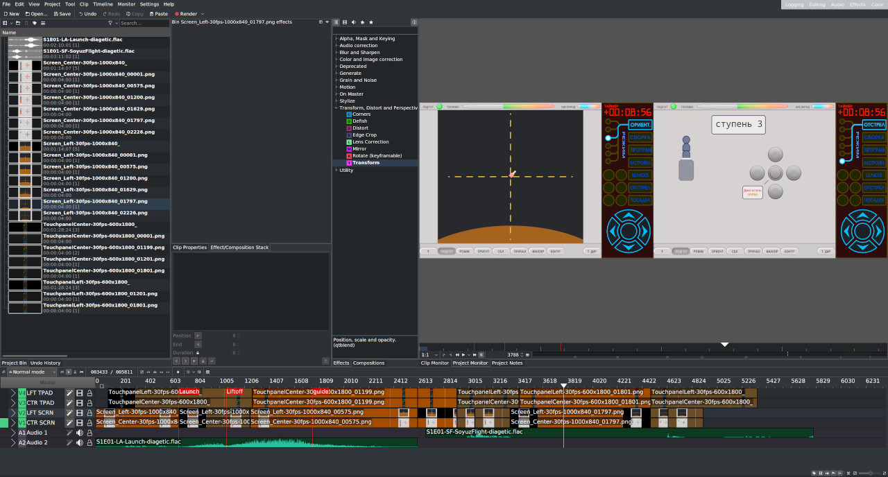 Fixed the rigging for the Soyuz video displays. Decided it would make more sense to do them as one video. This way, I can sync them in Kdenlive, and only have one property slider to worry about in Blender. Started the video, but it also needs to be checked against revised audio.
