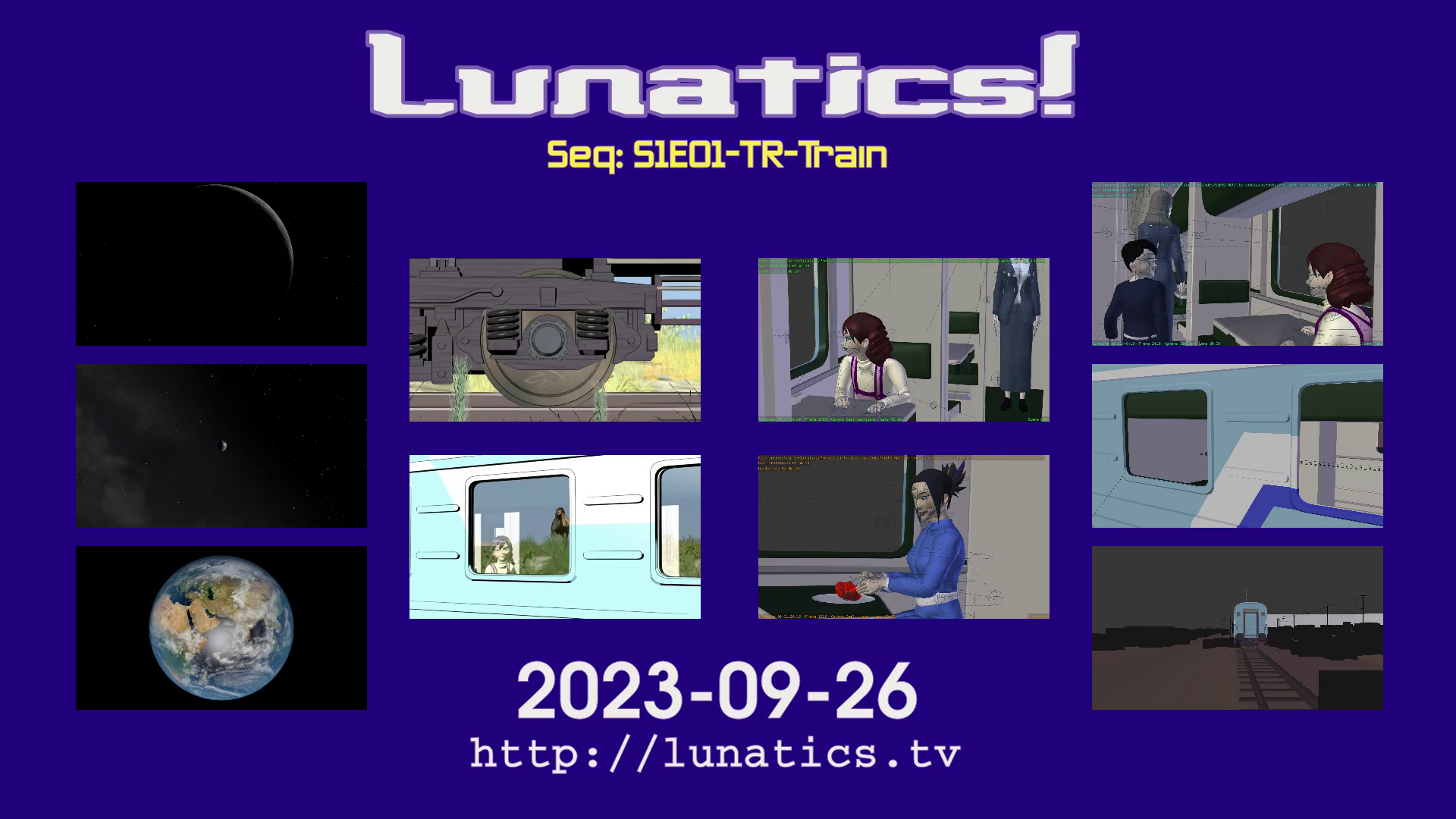 In Fall 2023, I re-assembled all of the sequences in the pilot episode, to see what the status is of all the shots (storyboards, animatics, blocking, animating, rendered, or composited). This has also allowed me to reassess the pacing and other factors, and I made the decision to break the existing timing, allowing me to lengthen the episode by a bit. Since the episode is a bit short as it is, I’m not worried about this (ideally, this is comparable to a “half-hour” animated show, which is usually about 20-22 minutes long, and the previous edit of Lunatics S1E01 was just 16.5 minutes, including titles).