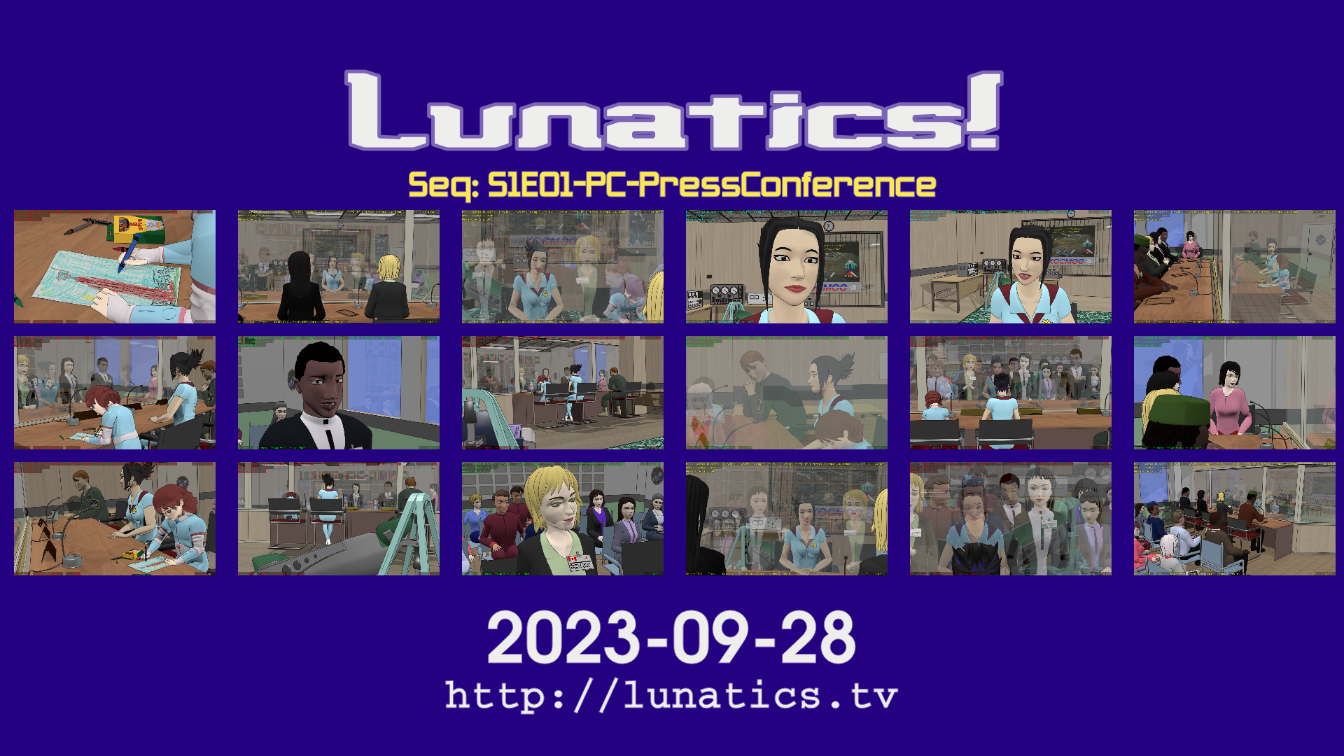 In Fall 2023, I re-assembled all of the sequences in the pilot episode, to see what the status is of all the shots (storyboards, animatics, blocking, animating, rendered, or composited). This has also allowed me to reassess the pacing and other factors, and I made the decision to break the existing timing, allowing me to lengthen the episode by a bit. Since the episode is a bit short as it is, I’m not worried about this (ideally, this is comparable to a “half-hour” animated show, which is usually about 20-22 minutes long, and the previous edit of Lunatics S1E01 was just 16.5 minutes, including titles).