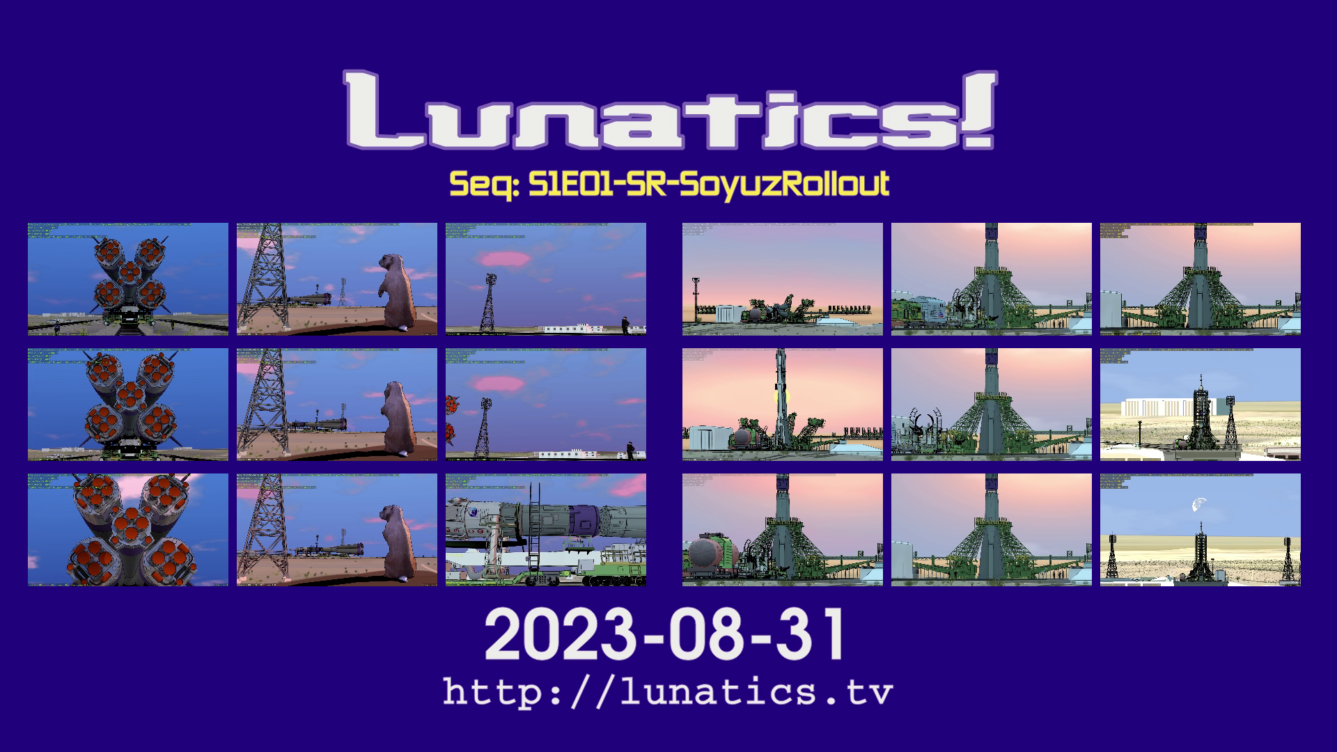 In 2023, I finally got around to re-doing this animation, using the updated and rerigged Soyuz launch vehicle and flame-plume assets. I found a major problem with the flame-rigging, and solved that, first, and then worked to match the staging. It is still a little tricky to work with, as the pods have to transition from one rigging system to another, but ultimately pretty convincing: