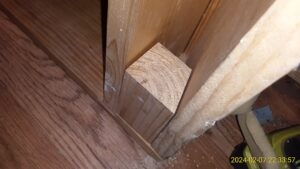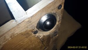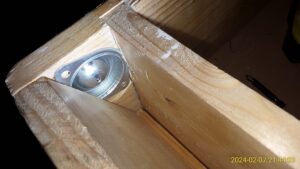 The door on the “sound booth” (which we use for higher-quality voice recording), has been very sticky for a long time. It’s a bookcase door; so it’s very heavy; and it has slumped somewhat so that it rubs the floor. This month, I installed a very low-profile roller under it to see if that would help. I’m a little disappointed with the results — it’s still pretty hard to move and it now makes a horrible noise — but it is still an improvement.