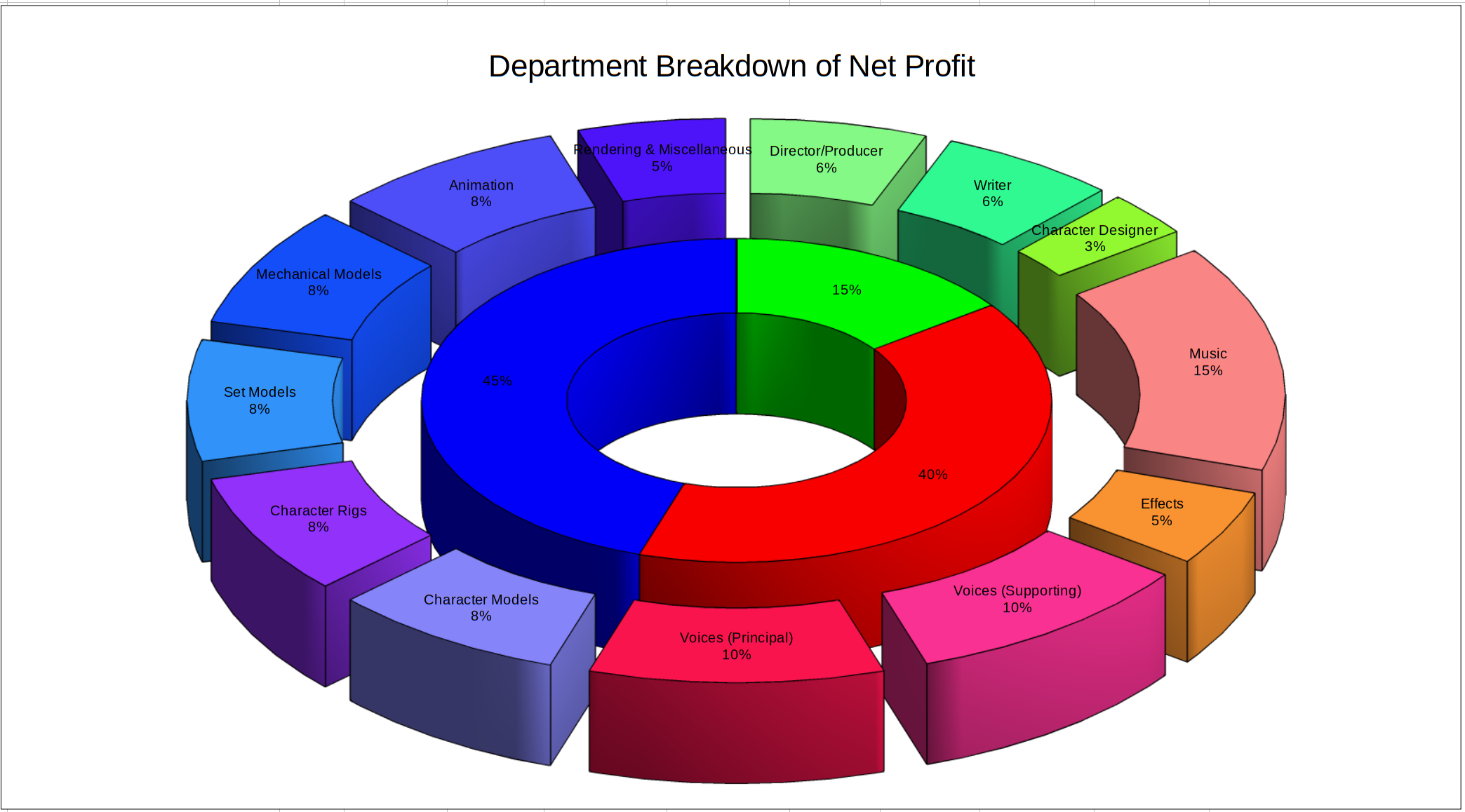 This is still a work-in-progress, but I do have the “production pie” breakdown, and the chart that goes with it. I’m working on rubrics to use in breaking down contributions in each department.