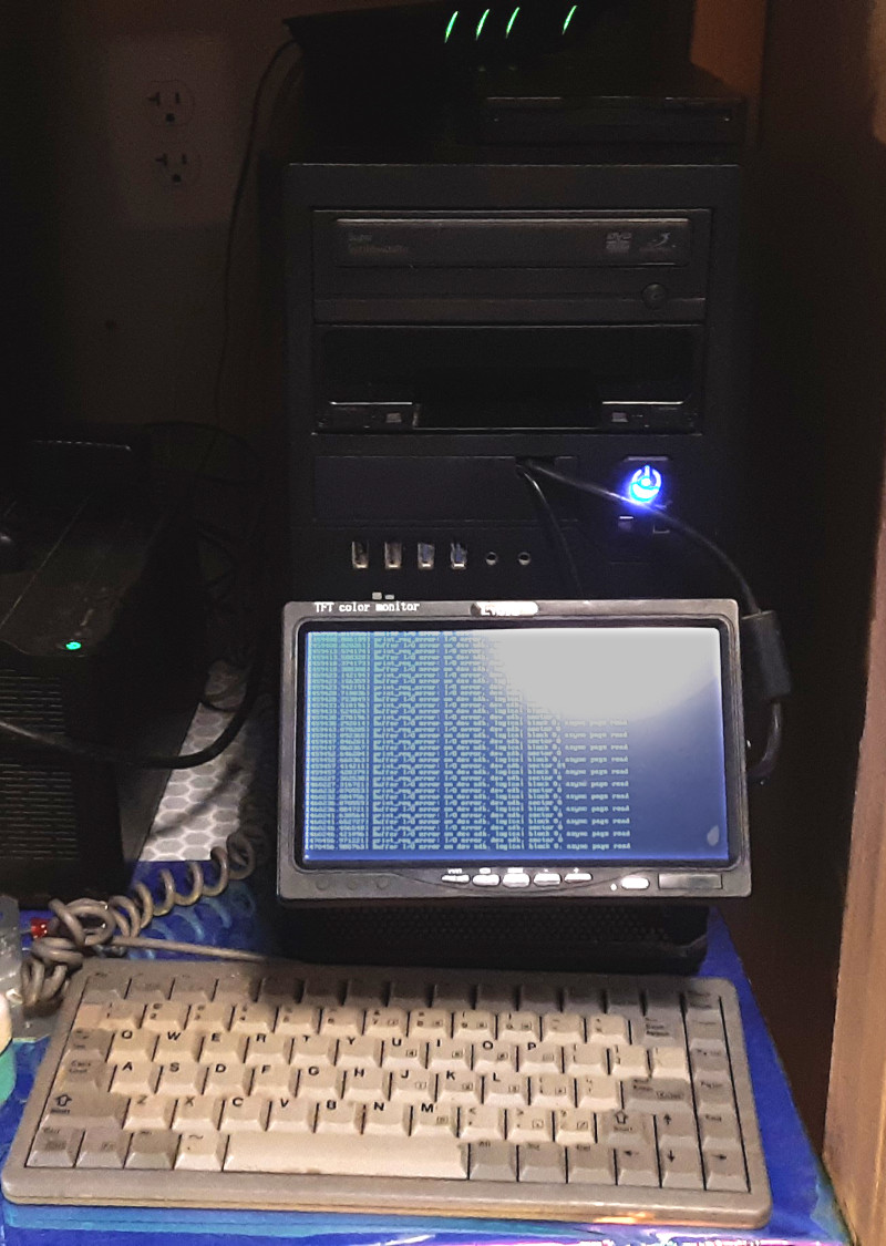 To a large degree, the reason this is all happening now is because I upgraded my computer and electronics workbench with power, lights, and a test keyboard, mouse, and monitor (the same ones I used as a console for setting up the server, “Narya”).