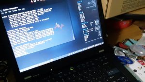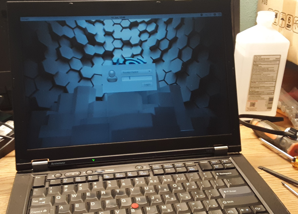 This is my newly-refurbished laptop, a Lenovo T-410 Thinkpad. It was once “Eowyn”, a writing laptop for Rosalyn, but it was dropped and the screen was basically destroyed. I bought a replacement monitor from e-Bay and replaced that last year, only to find the cooling fan had also failed.